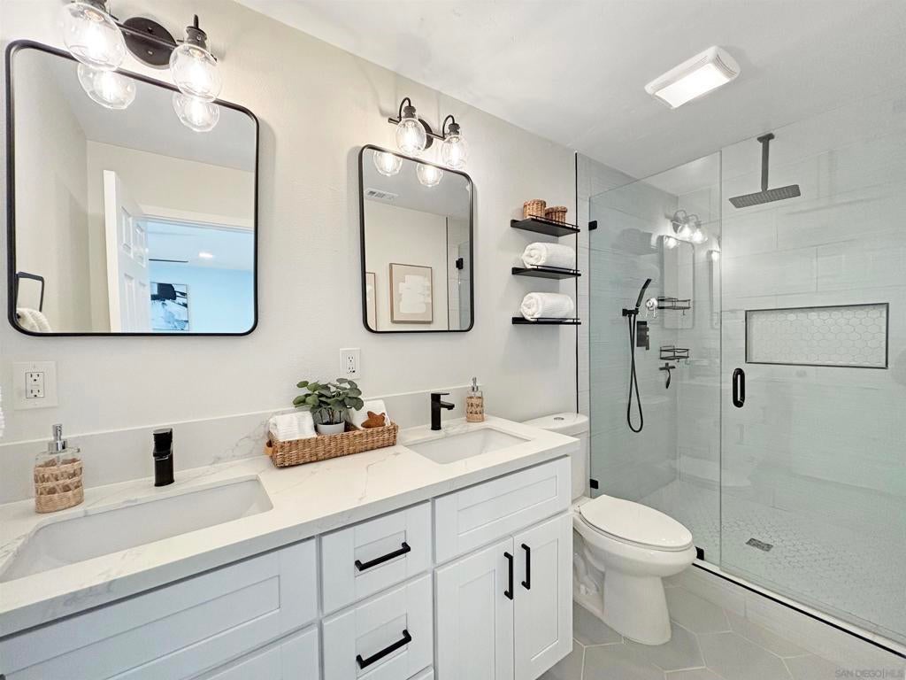 This sought-after University City property features two beautiful homes on an 11,100 lot!! The main house is 1,543 sq ft, 4 bedroom, 2 bathroom and is completely renovated inside and out! The back house was newly constructed in 2024 and is a gorgeous 1 bedroom, 1 bathroom, 680 sqft home. Endless possibilites for the new owner... Utilize it all or ... Live in one house and rent out the other to off-set expenses or perfect guest house? Multi-generation living, each getting their own space? Investor buyer can have two rentals? You decide! Additional features: Fully owned solar with battery, NEM 2.0, car charger, air conditioning, tankless water heater. Close to major businesses, world renowned shopping & restaurants, trolley station, UCSD, La Jolla Shores, and walking distance to excellent schools, library & parks.
