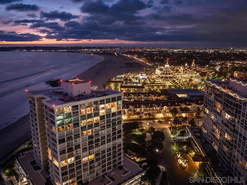 Penthouse Living with Iconic Hotel del Coronado & City Views You’ll feel like you’re on top of the world in this penthouse-level studio at Coronado Shores, perched high on the 16th floor with breathtaking views of the San Diego skyline and the world-famous Hotel del Coronado. By day, the historic red rooftops of the Del anchor your view; by night, the twinkling city skyline creates a dramatic backdrop. The residence has just been refreshed with new paint, luxury vinyl plank flooring, and updated lighting — creating a brighter, more inviting atmosphere. Completed remodel plans and a full stack analysis for washer/dryer installation are included, saving months of planning and giving the next owner a clear path to transform this space into a custom retreat. Floor-to-ceiling windows flood the home with natural light, while the open layout offers flexibility for full-time living, a second home, or an investment. As part of Coronado Shores, residents enjoy resort-style amenities: oceanfront pools, tennis, pickleball, a fitness center, and the Beach Club — featuring live music, line dancing, bingo, and a vibrant calendar of activities. All of this, just steps from the sand and a short stroll to the Del. An extraordinary opportunity to own a penthouse with postcard-perfect views of the city and the iconic Hotel del Coronado.