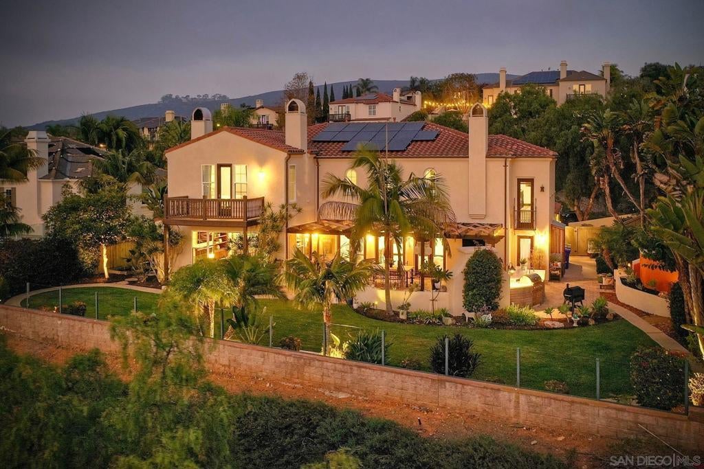 Move-In Ready La Costa Oaks Home with Beautiful Sunset and Ocean Views set on a Premium Lot. Stylish and inviting, this upgraded home boasts an open, light-filled floor plan with soaring ceilings and a spacious great room, ideally suited for modern living and entertaining. The home is equipped with a Sunrun Plus solar system paired with three Tesla Powerwall batteries, providing energy efficiency, backup power, and peace of mind. The chef’s kitchen showcases a large island, stainless steel appliances, and abundant cabinetry. Enjoy coastal breezes and stunning sunsets from the private, west-facing backyard, complete with an outdoor kitchen, fireplace, and seating area—perfect for relaxing or hosting friends. The yard also features a producing avocado tree, adding a touch of coastal California charm. The luxurious primary suite features a cozy fireplace, a private view deck, and a spa-inspired bath. Ideally located minutes from Carlsbad’s beaches, top schools, shopping, and dining.