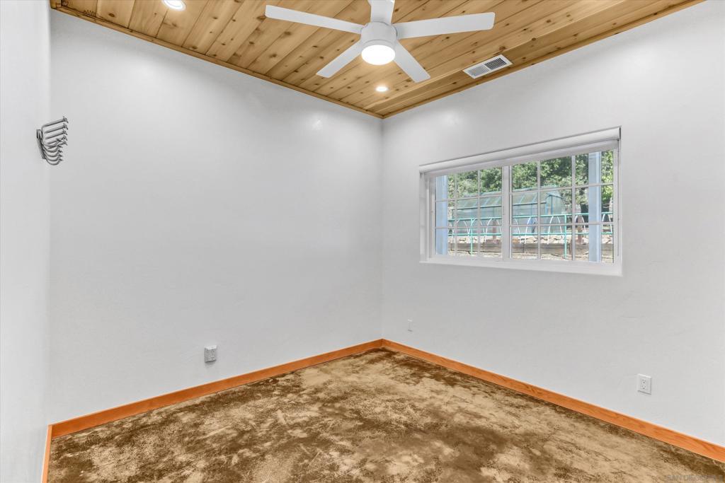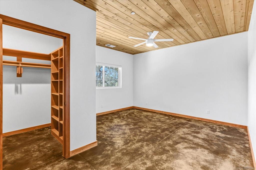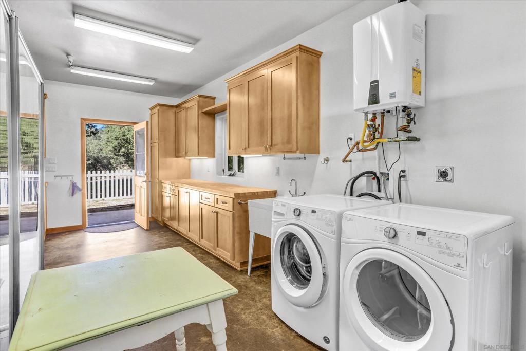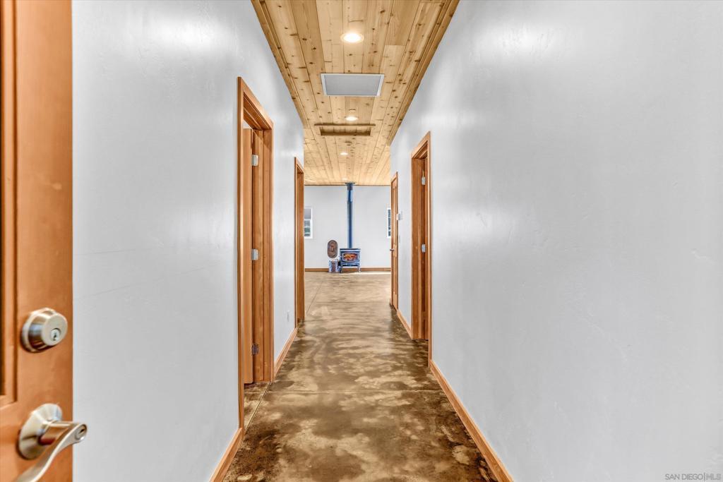 Escape to your personal sanctuary at 3258 Pine Hills Road, Julian, CA—a chic, modern ranch-style home that blends comfort and nature. Located in the coveted Pine Hills neighborhood, this property offers both the convenience of nearby town life and the tranquility of seclusion. With 1,342 sq. ft. of elegant living space, this two-bedroom, two-bathroom gem is set on a sprawling 51.75-acre estate. Inside, enjoy the sophistication of concrete floors and abundant natural light from dual-pane windows and recessed lighting. The open kitchen, complete with a gas stove, oven, dishwasher, and refrigerator, is perfect for culinary adventures and entertaining. The living room features a cozy potbelly stove for relaxing evenings. The primary bedroom offers a walk-in closet and an ensuite bathroom with a charming clawfoot tub for a spa-like experience. Outside, the property features a private fenced patio, stunning views, and a welcoming screened porch. An attached climate-controlled garage with custom cabinetry, a washer/dryer, and a tankless water heater is ideal for hobbies and vehicle care. Beyond the main house, a charming guesthouse awaits, complete with a kitchenette, bathroom, bedroom, office, and stalls for horses or other animals. The estate also includes a versatile greenhouse, garden beds, thoughtful irrigation, and a practical tractor shed for outdoor pursuits. Whether you seek a tranquil retreat or a luxurious second home, this Julian oasis awaits you.