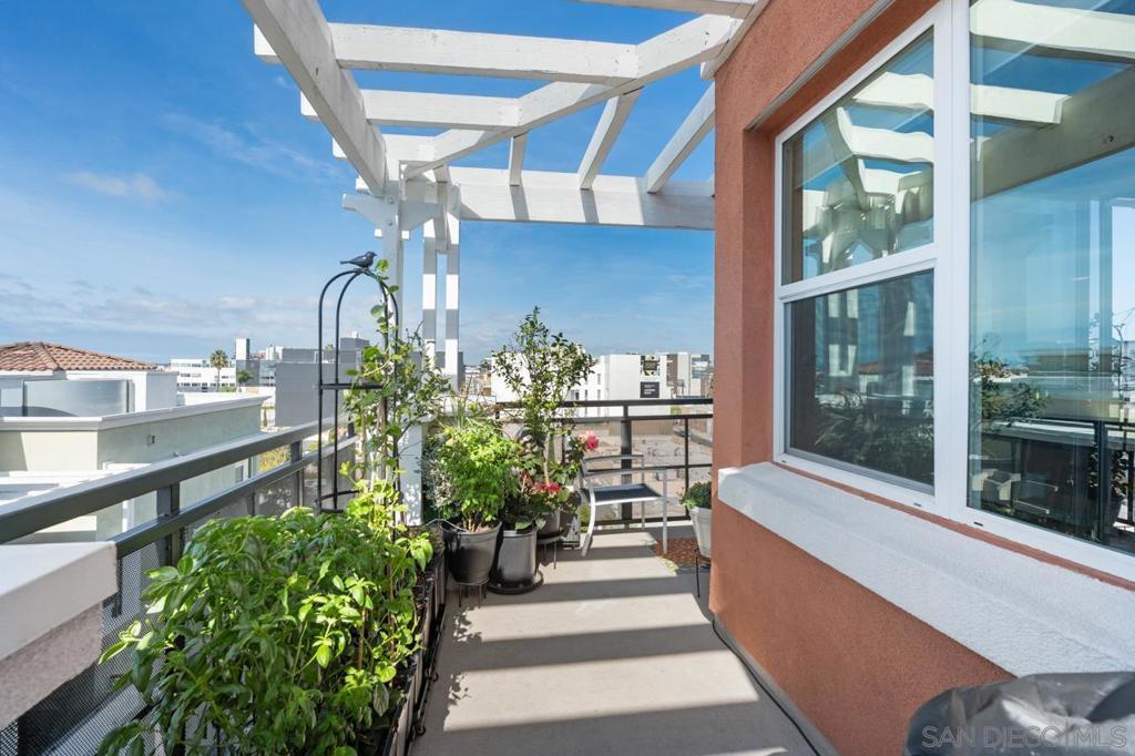Come experience this stunning northwest-corner penthouse offering ocean & downtown views & breathtaking sunsets from two private balconies—one off the primary suite and another wrapping around the spacious great room. This open-concept floor plan combines elegance and functionality with abundant natural light and an incredible breeze from the top floor. The beautifully upgraded kitchen features a new Cambria quartz island, custom cabinetry, designer fixtures, a water filtration system, and a KitchenAid Eco Series 24” top-control dishwasher. Thoughtful details include custom-painted cabinets, metal roller pull-out shelving, a new backsplash, and three stylish pendant lights. The custom-built bar with quartz countertop and 52-bottle wine refrigerator—enhanced by new bar lighting and a chic dining-area chandelier—creates the perfect space for entertaining. Additional upgrades include a TV entertainment system with integrated lighting, new ceiling fans in the living room and guest bedroom, blackout roller shades in both bedrooms, custom-painted bathroom cabinets with framed mirrors, and new carpet in the hallway and bedrooms (installed just 2½ years ago). This home is in pristine condition within a community that recently received fresh custom paint and new carpeting throughout all common areas—reflecting pride of ownership, a strong HOA and attention to detail. Enjoy side-by-side parking, large secure walk in storage unit in garage, EV chargers, pool, hot tub, gym, and a social lounge, all just steps from Balboa Park and Hillcrest’s vibrant restaurants and nightlife.