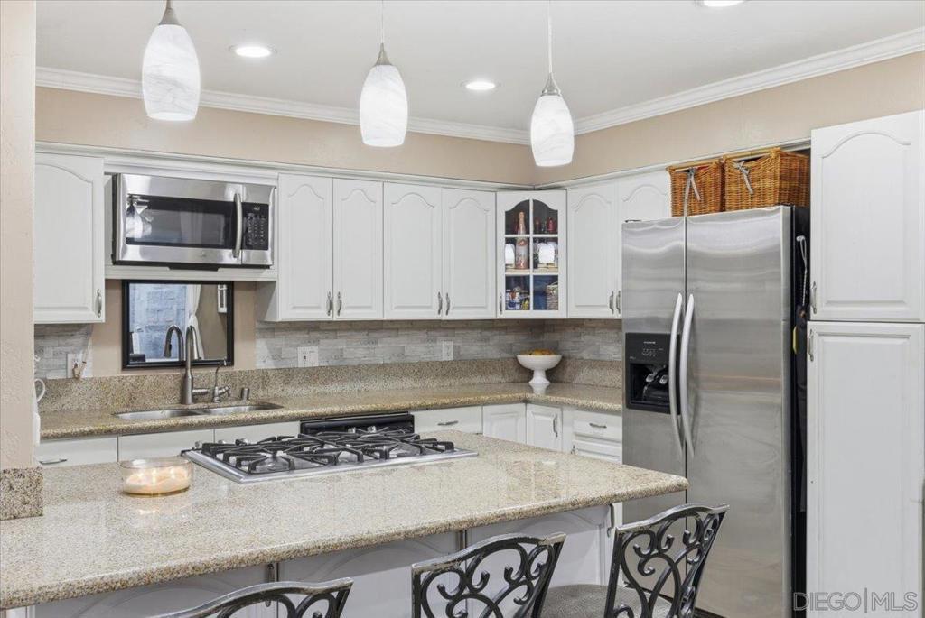 This beautifully maintained 3 bedroom, 2 bath open-concept home welcomes you with warm natural light and thoughtful updates throughout. The spacious kitchen features an inviting island, a large gas stovetop, and seamless flow into the dining and living areas—perfect for everyday living and effortless hosting. The home includes a large guest bathroom and a remodeled primary en-suite bathroom, with the primary suite opening directly to the backyard—ideal for stepping out to enjoy your morning coffee or unwinding with a glass of wine as the day comes to a close. Step outside and discover a backyard designed for moments that turn into memories. An outdoor living room sits just steps from a chef’s-grade outdoor kitchen featuring a premium grill, built-in griddle, dedicated side burner, and elegant fire features set into the granite countertop—adding warmth, ambiance, and a touch of luxury to every evening outdoors. From here, the space cascades gracefully to the lower-level pool and entertainment area, where a sparkling pool with a sunlit Baja shelf and umbrella sleeves invites you to lounge in the water while staying cool on warm Southern California days. Every corner of this outdoor retreat is crafted for connection, celebration, and lingering conversations long after sunset. Additional features include RV parking, solar, and a newer HVAC system. Close to shopping, restaurants, and schools, this home offers a lifestyle rarely found yet always sought after—and a backyard you’ll never want to leave.