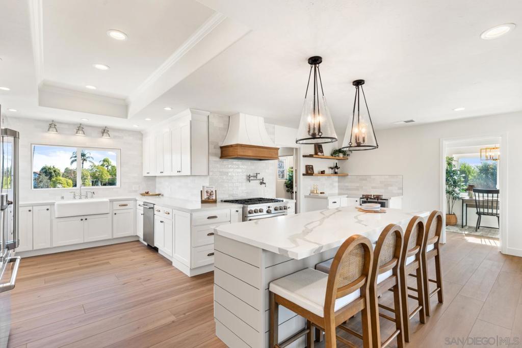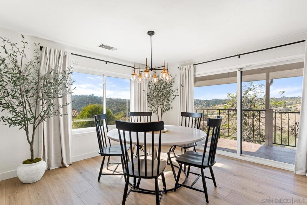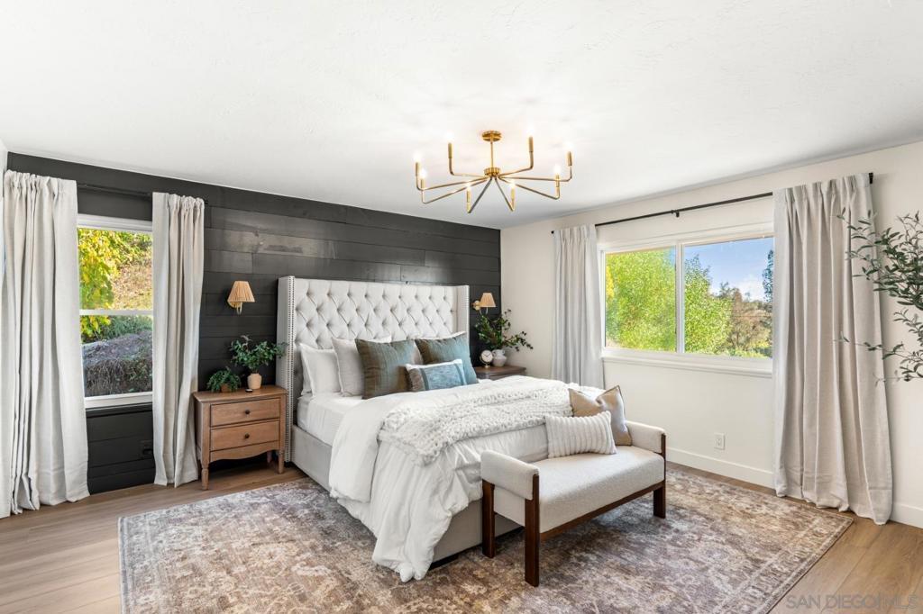 4141 Palomar Drive is a beautifully refreshed 5-bedroom, 3-bath, 3,000 sq. ft. home on 1.18 private acres, offering modern comfort, privacy, and refined Fallbrook living. Set behind a gated entry and surrounded by mature landscaping, the home enjoys peaceful views and the quiet charm the area is known for. Renovated in 2025 with updated finishes, new lighting, and designer touches, it blends warmth with a clean, elevated aesthetic. All five bedrooms are conveniently located on the main level—ideal for families, guests, or multigenerational living. The entry and living room feature soaring ceilings and abundant natural light, while a dedicated home theater enhances entertainment options. Upstairs, the kitchen boasts quartz countertops, an expansive island, walk-in pantry, and high-end Café appliances including a 6-burner range, flowing effortlessly into the dining and family areas. The primary suite offers a peaceful, retreat-like setting with spa-style finishes. Outdoors, the property is a destination featuring RV parking with hookups, space for a possible ADU, a scenic balcony, a large view deck, and a resort-style pool with spa and waterslide. The land includes a hobby vineyard with Sangiovese and Merlot vines, plus producing avocado and citrus trees. A detached building provides additional space for a workshop, gym, studio, or storage. Located minutes from Fallbrook’s village, schools, wineries, golf, and hiking, this property offers space, lifestyle, and exceptional privacy.