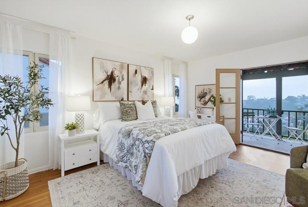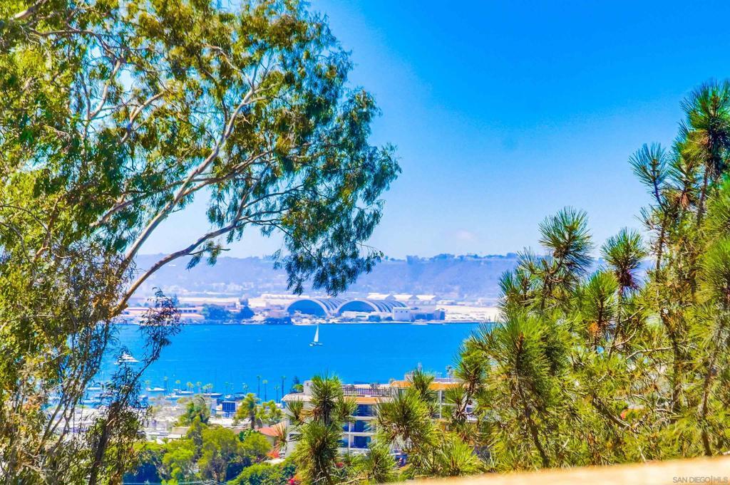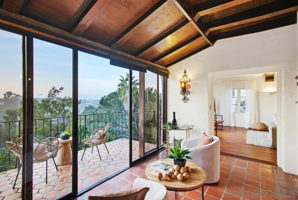 Step into the timeless charm of 1929 with this classic Spanish Colonial Revival residence, nestled in a secluded enclave of Bankers Hill. Brimming with character, the home showcases authentic stucco exteriors, red clay tile roof, original wrought iron details, and gracefully arched windows and doors. Inside, you'll find exposed, hand-painted wood beams, artisan tilework, and historic elements that reflect the home’s architectural heritage. The floor plan features generously sized rooms, private balconies, and partial bay views that bring in natural light and coastal breezes. The terraced backyard is shaded by a canopy of mature, fruit-bearing trees, including two varieties of avocado, an assortment of citrus, plum, fig, and more.