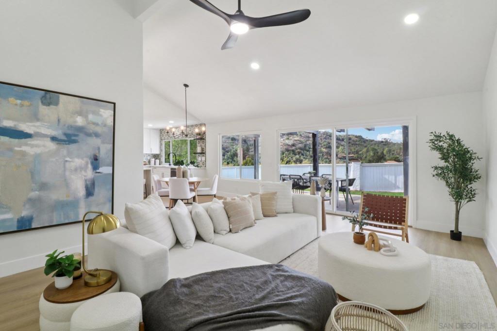 Experience Fallbrook living in this elegantly remodeled single-story retreat, set on 2.45 acres of exceptional privacy with sweeping mountain and canyon views. Thoughtfully updated throughout, this 5-bedroom, 3-bath residence offers a sophisticated blend of modern comfort and timeless design. Expansive living spaces showcase new windows and sliders that frame the surrounding landscape, while the reimagined chef’s kitchen features all-new cabinetry, quartz countertops, and premium appliances. The serene primary suite opens directly to the backyard and includes an upgraded bath with dual vanities and a walk-in shower. All bedrooms are positioned on one level for effortless living, with a versatile fifth bedroom ideal as an office or retreat. Outside, enjoy a fully fenced pool area, covered patio, and uninterrupted vistas across rolling hills. The expansive grounds offer RV parking, room for an ADU, and space for horses or future improvements. A private gated driveway elevates the sense of exclusivity while keeping the home conveniently close to town. With no HOA, this property delivers a rare blend of luxury, privacy, and contemporary elegance in one of Fallbrook’s most desirable settings.