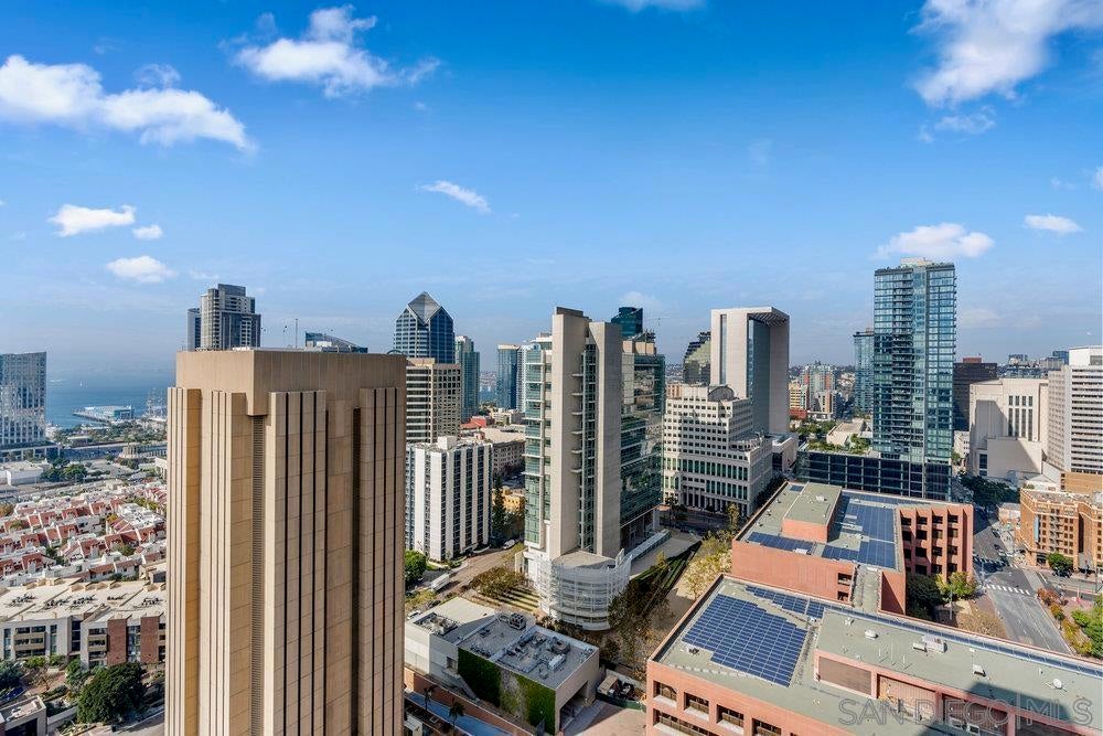 Perched on the 21st floor of the iconic Meridian, this 1,460 sq ft, 1 bedroom + 1.5 bath residence offers a rare chance to create a completely customized city retreat in one of downtown’s premier full-service buildings.Elevated high above the Marina District, its expansive windows frame spectacular downtown skyline views, sparkling city lights, and the energy of San Diego’s urban core. The Meridian is renowned for its high-level services and amenities, including 24/7 concierge and security, valet parking, porter service, resort-style pool and spa, fitness facilities with steam/sauna, guest suites, community and meeting rooms, and beautifully landscaped terrace gardens. Perched on the 21st floor of the iconic Meridian, this 1,460 sq ft, 1 bedroom + 1.5 bath residence offers a rare chance to create a completely customized city retreat in one of downtown’s premier full-service buildings.Elevated high above the Marina District, its expansive windows frame spectacular downtown skyline views, sparkling city lights, and the energy of San Diego’s urban core. The Meridian is renowned for its high-level services and amenities, including 24/7 concierge and security, valet parking, porter service, resort-style pool and spa, fitness facilities with steam/sauna, guest suites, community and meeting rooms, and beautifully landscaped terrace gardens.