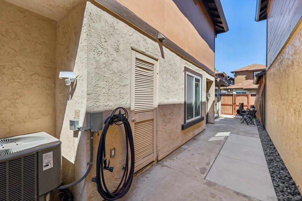 A great opportunity to own a well maintained 3 bedroom 2.5 bath home in Lakeside with modern features, low HOA and an unbeatable location for the price! Inside you will find a spacious layout that is perfect for both relaxing and entertaining. Recent improvements include a brand new $39,000 HVAC system and Tesla solar panels for energy efficiency. The private outdoor space is ideal for barbecues or gatherings with family and friends.The home offers two parking spaces with one garage spot featuring an epoxy floor and a second parking space located right next to the garage and near the entry for added convenience. The low HOA fee gives you access to the community pool and spa and also covers water and trash service.The location is close to shopping, dining and freeway access. In just 30 minutes you can be at San Diego beaches, Downtown and popular attractions. Don't miss the opportunity to have your own slice of San Diego Real Estate!!
