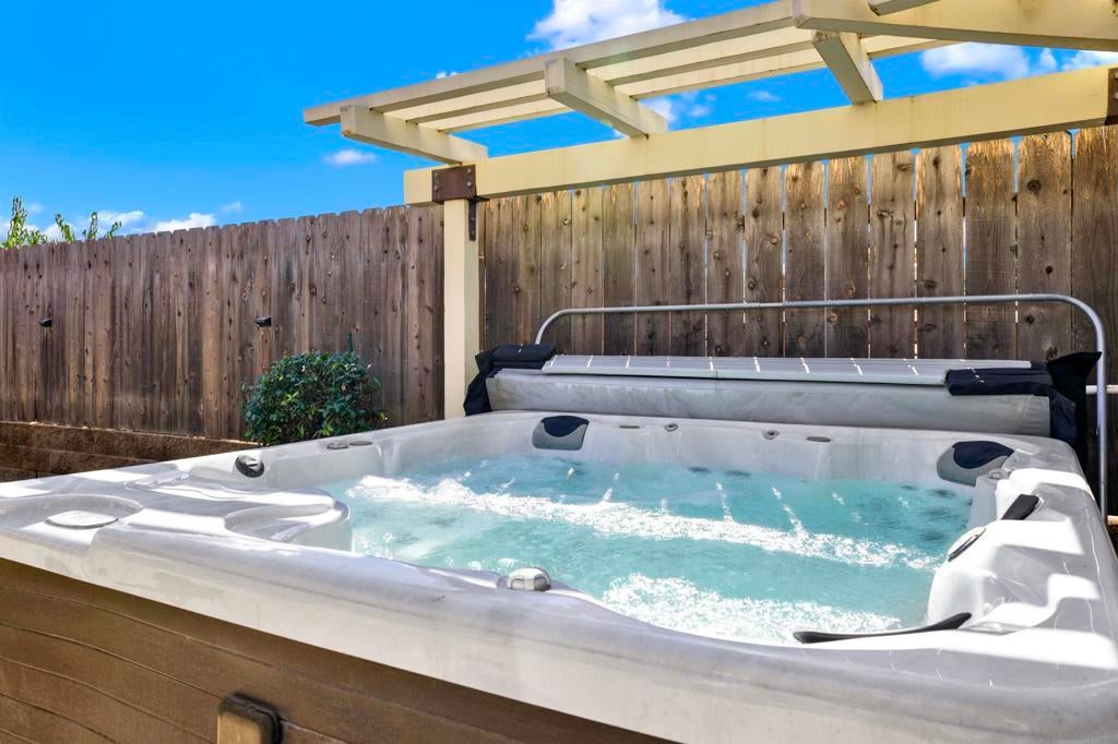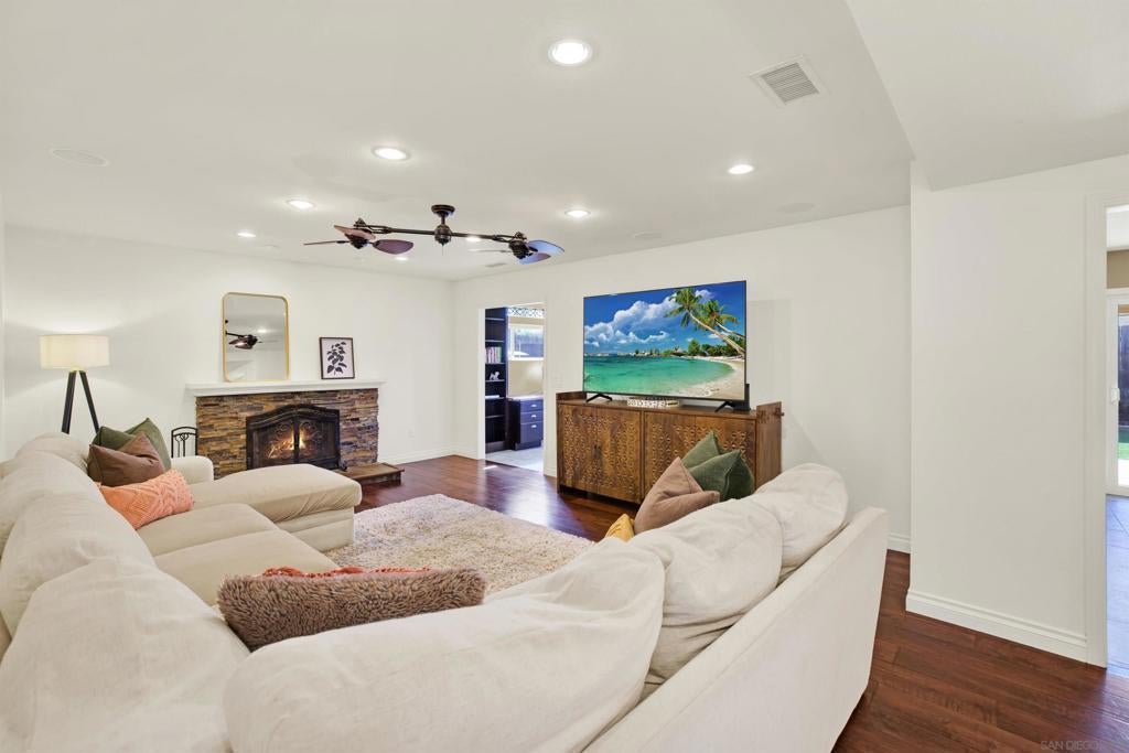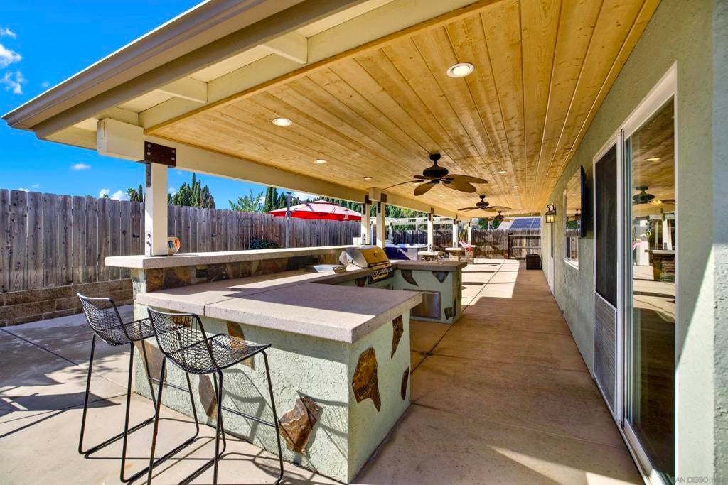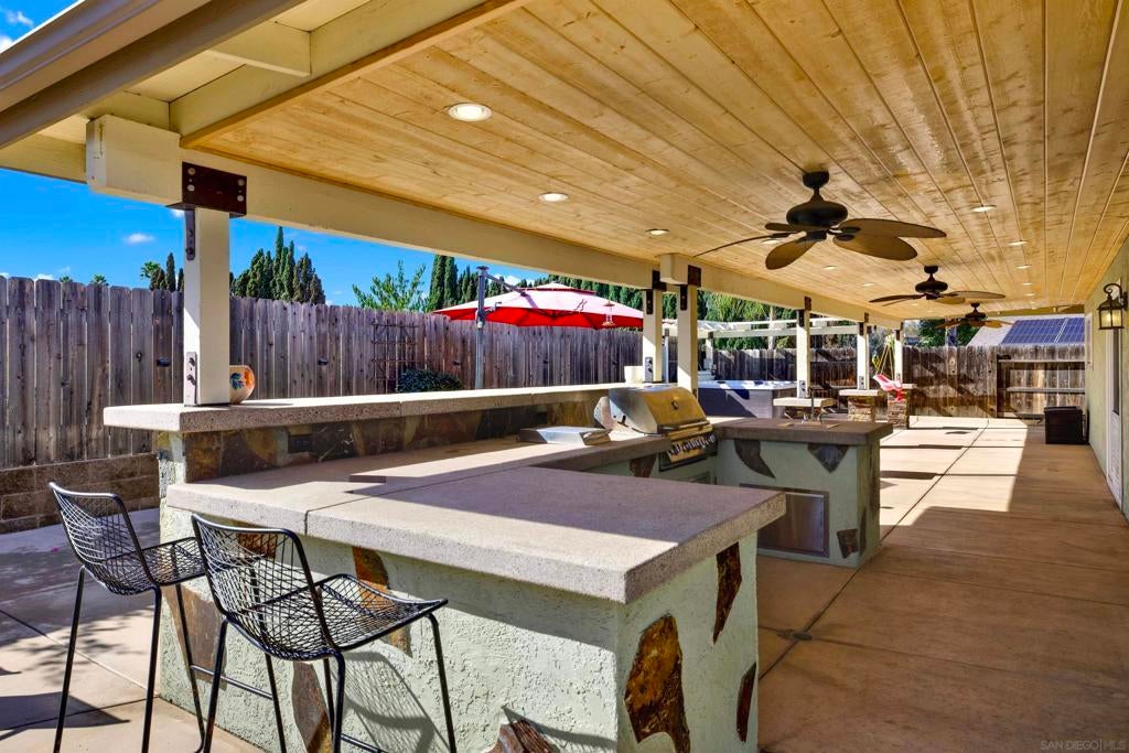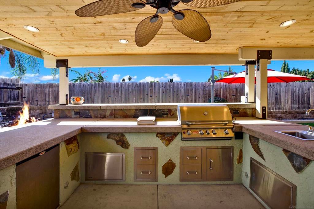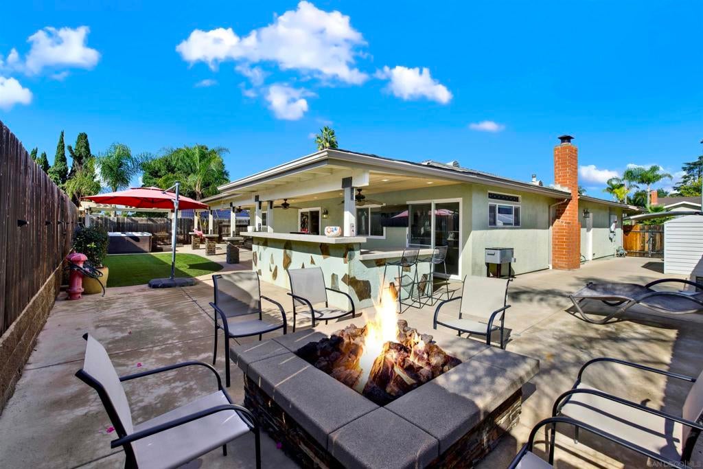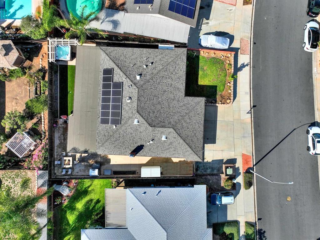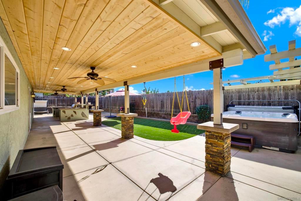 LUXURY OUTDOOR LIVING, PAID SOLAR, NO HOA! Discover this beautifully maintained single-level gem offering comfort, style & standout outdoor living space. Step into a warm & inviting home featuring hardwood floors and a generous family room with a cozy fireplace & a built-in surround sound system. Thoughtful touches throughout, including a charming built-in wine rack nook in the open concept dining area & a convenient built-in desk with storage just off the kitchen. The spacious, low-maintenance backyard is an entertainer’s paradise featuring a luxury BBQ island, bubbling jacuzzi, turf, gas fire pit & a state-of-the art covered patio with TV, ceiling fans & lighting for year-round enjoyment. The finished garage includes custom cabinets & abundant storage. Move-in ready & packed with desirable features, this home is a must-see!