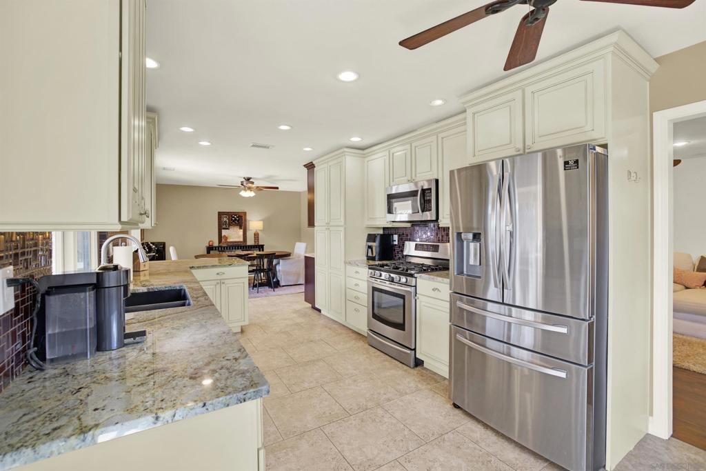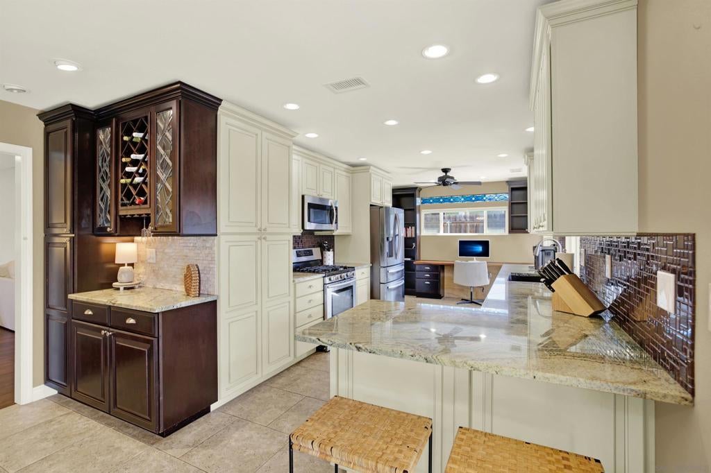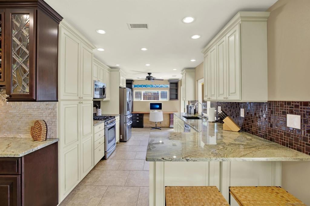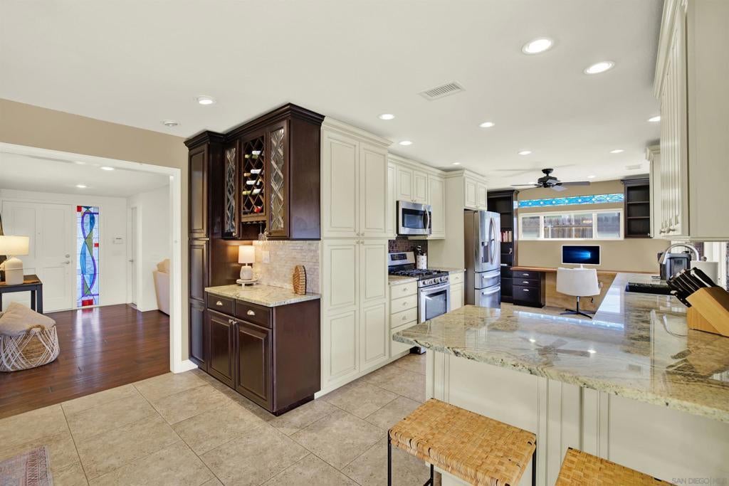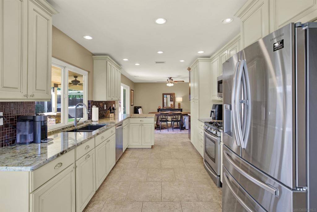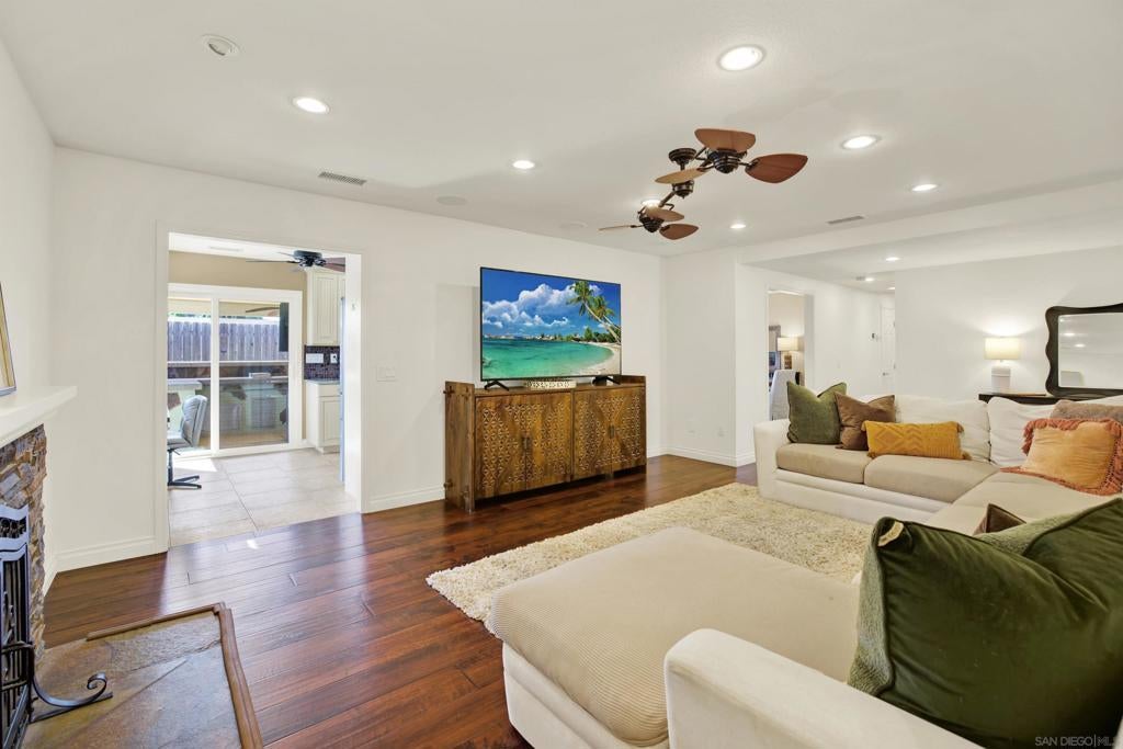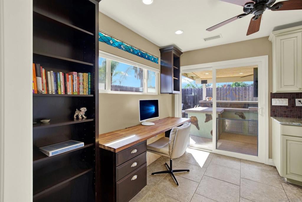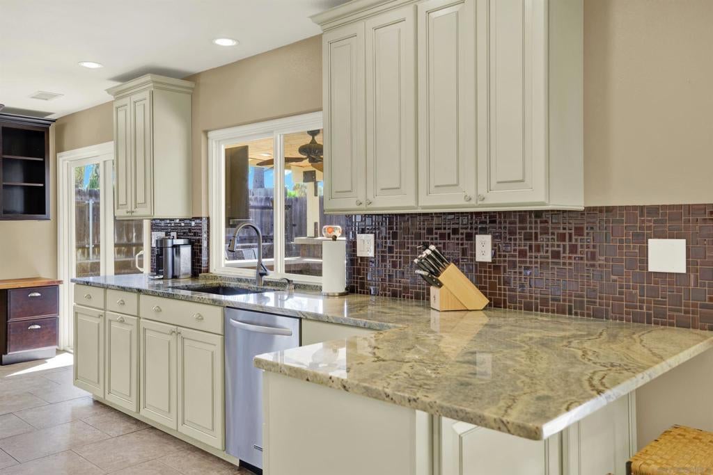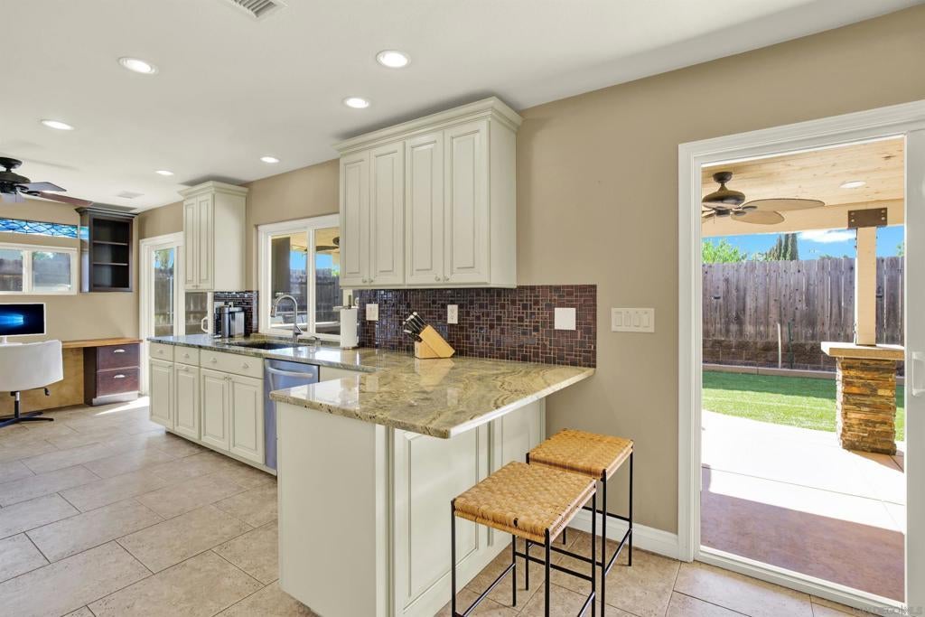 LUXURY OUTDOOR LIVING, PAID SOLAR, NO HOA! Discover this beautifully maintained single-level gem offering comfort, style & standout outdoor living space. Step into a warm & inviting home featuring hardwood floors and a generous family room with a cozy fireplace & a built-in surround sound system. Thoughtful touches throughout, including a charming built-in wine rack nook in the open concept dining area & a convenient built-in desk with storage just off the kitchen. The spacious, low-maintenance backyard is an entertainer’s paradise featuring a luxury BBQ island, bubbling jacuzzi, turf, gas fire pit & a state-of-the art covered patio with TV, ceiling fans & lighting for year-round enjoyment. The finished garage includes custom cabinets & abundant storage. Move-in ready & packed with desirable features, this home is a must-see!