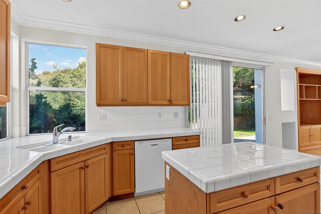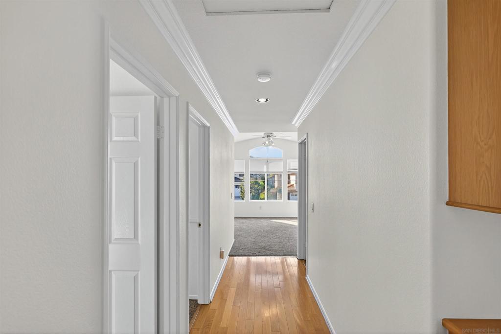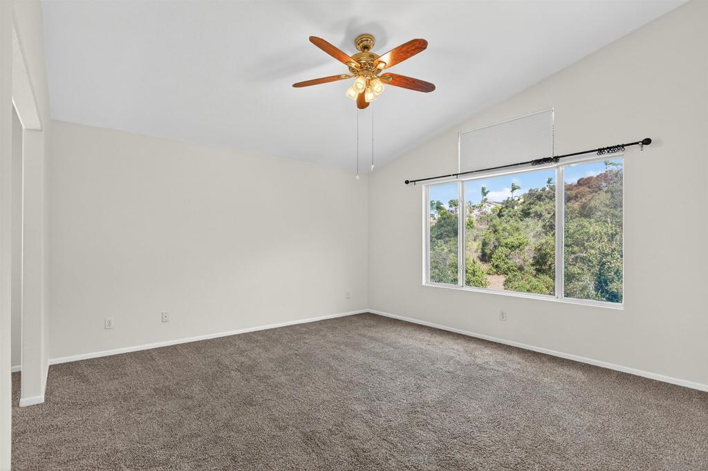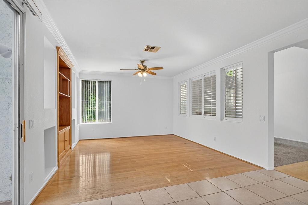 Bright and spacious home on a quiet cul-de-sac. Open space in the back and you only have one neighbor sharing the fence. No home to the back or the right side of the house. One of the bedroom upstairs is converted into an open space. But you can convert it back to a bedroom. Wood, tile, and carpet covers the floor area. High ceilings and ceiling fans. One of the bedrooms is conveniently on the first floor for those who may have tough times going up the stairs. There is a separate space/retreat off the master bedroom which you can use it for your office, work out room, or your hobby room. Large lemon tree with tons of lemons. Neighborhood park is nearby. Located in award winning Poway School district. Quick drive to the freeway (I15) and shopping. You could move in right away and make it your home. Or remodel to suit your taste.