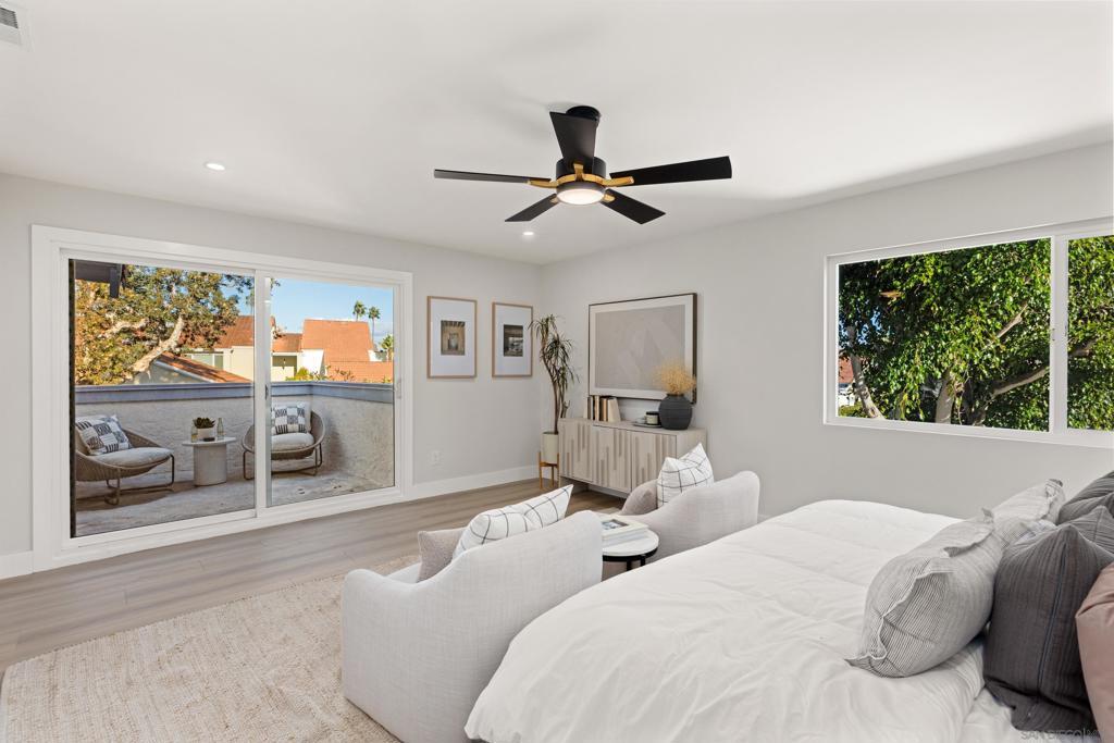 Welcome to a coastal jewel in the exclusive Coronado Cays, California’s only residential marina community south of Newport Beach. This beautifully remodeled 5-bedroom, 3-bath home sits on a premier corner lot and offers one of the most sought-after locations in the neighborhood. Step inside to discover an open bright floor plan with thoughtful upgrades throughout. The spacious primary suite features an enlarged walk-in closet and a private balcony with peekaboo ocean views of both the Pacific Ocean and San Diego Bay. Upstairs bedrooms also enjoy refreshing Ocean breezes and calming coastal vistas. The main level includes a versatile entry-level bedroom or office conveniently located next to a full bath. Multiple sliding doors open to an enlarged backyard. The two-car garage offers exceptional storage, including space ideal for gym equipment, a sauna, or red-light therapy setup. Just a few steps away are world-class beaches, the bay, yacht club, parks, tennis and pickleball courts, dog park, playgrounds, and the famous Silver Strand bike path. The community clubhouse, pool, and spa are also less than 100 steps away. Award-winning schools this home offers the very best of coastal living.