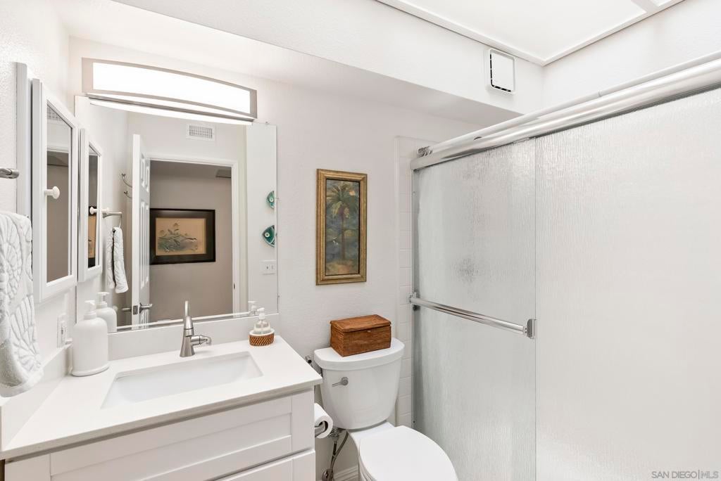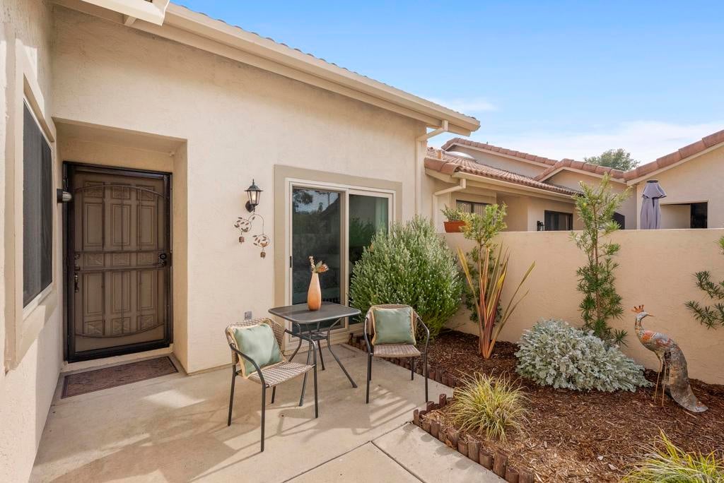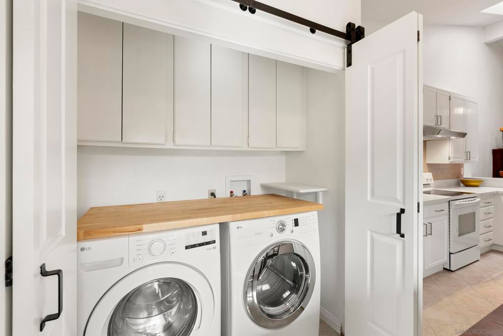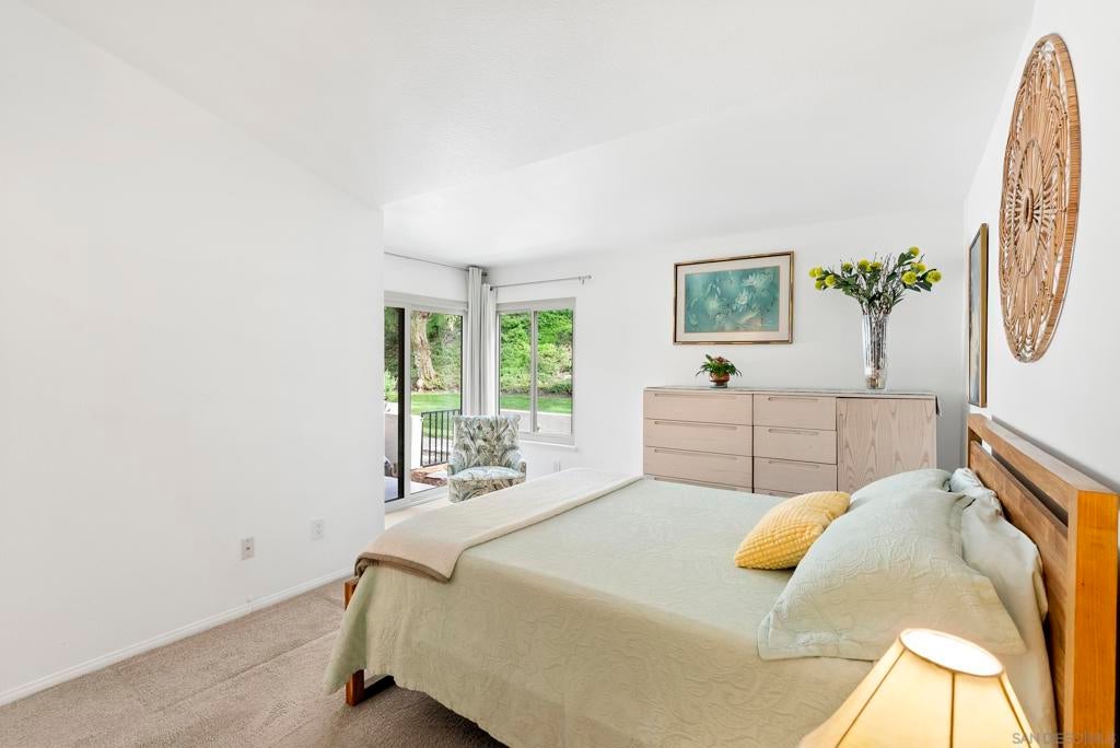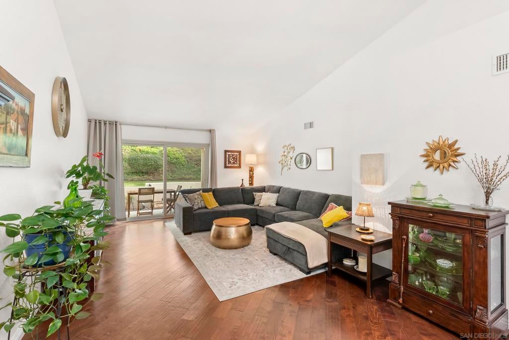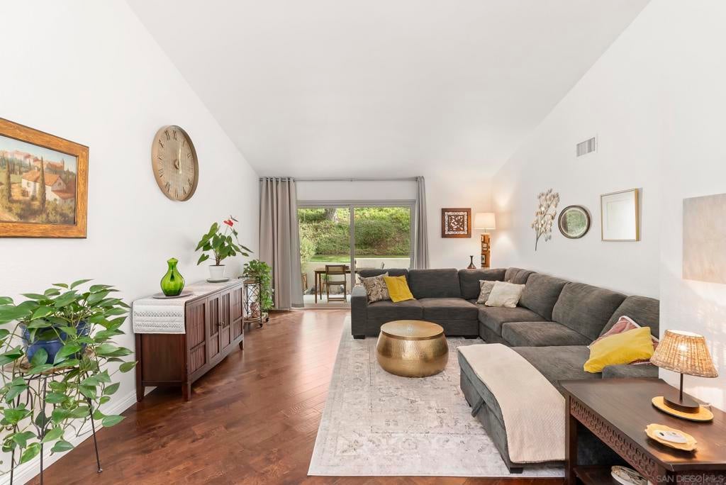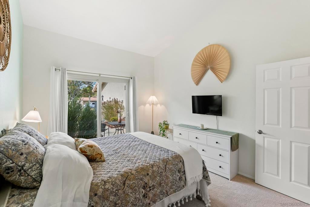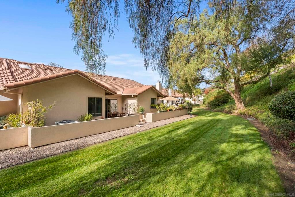 Wow! Take a look at me now! Gorgeous renovation is complete for the next lucky owner! Located in the highly sought-after 55+ Oaks North Villas, this single-story home now showcases a brighter, cleaner, more modern aesthetic. Step inside to soaring vaulted ceilings, abundant natural light, and the benefit of newer Anlin dual-pane/ dual sliding windows and sliding doors. The kitchen has undergone a stunning transformation: upper cabinets removed to open the space, all cabinetry professionally repainted (see suppl) in crisp white, new hinges and hardware, brand-new leathered-finish quartz countertops, stainless-steel sink, modern faucet, and new electrical outlets throughout. New bi-fold barn doors now elevate the laundry area with both style and convenience. Thoughtful upgrades continue throughout the home: refreshed bathrooms with quartz counters and modern Kohler fixtures, distressed wood-style flooring in the spacious combo dining and living room, fresh carpet in the secondary bedroom, updated hardware, newer interior paint, new water heater (2024), new washer (2024), and a new HVAC system with updated ducting (2023). Enjoy two outdoor retreats—an inviting front courtyard and a serene rear patio upgraded with porcelain tile and backing to a peaceful greenbelt. Perfect for enjoying your morning coffee or San Diego’s sunshine any time of year. Living in Oaks North means access to a vibrant community center featuring a heated pool/spa, tennis and pickleball courts, fitness center, lawn bowling, ceramics, woodshop, and an active social calendar. Completely refreshed and move-in ready, this home presents a rare opportunity to own a beautifully updated residence in one of San Diego’s premier 55+ communities.