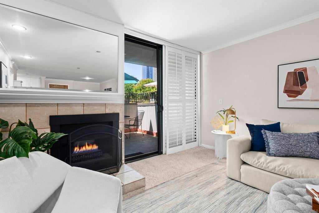 Experience downtown living in the heart of the Marina District with this spacious 1BR/1BA condo at Marina Park. This move-in–ready home features an open layout, cozy fireplace, and a private patio with peaceful views of the lush courtyard and pool area. Primary bedroom features three closets! Enjoy resort-style amenities including two pools/spas, fitness center, sauna, front-desk attendant, guest parking, and beautifully maintained grounds. Just steps to Seaport Village, the Embarcadero, Gaslamp, Petco Park, Rady Shell, dining, shopping, and waterfront recreation. A quiet, secure community with unbeatable walkability—perfect as a primary home or lock-and-leave getaway. Property conveniently located adjacent to Pantoja Park. Buyer to verify all information including square footage, HOA fees, rules, and parking prior to COE. HOA covers water, sewer, trash, exterior maintenance, and common area amenities. Ideal for buyers seeking a quiet, well-managed community in the Marina District with excellent walkability.