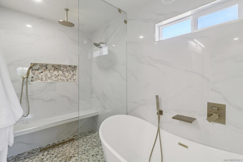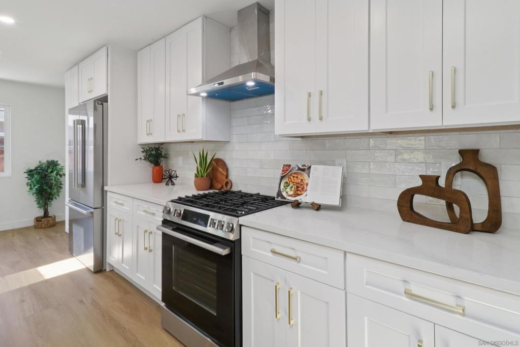 Beautifully remodeled home in the peaceful yet central enclave of Bay Park! This home stands out for its high end finishes, extra half bath, 4th bedroom, and oversized master suite with soaking tub and walk-in closet. The home backs up to Tecolote Canyon, meaning no rear neighbors and beautiful views of nature! The tranquil location will make you feel 1,000 miles from the chaos of the city, but you will be in one of San Diego's most central neighborhoods, only 10-15 minutes from Downtown, Balboa Park, Ocean Beach, Pacific Beach, Mission Valley, and all the rest that central San Diego has to offer. New electrical, plumbing, roof, AC, and more. Completely turnkey and move-in ready! Come and relax on the large covered patio while kids or pets play in the spacious yard. Don't miss out on this amazing opportunity! Square footage includes approximately 400 sqft of unpermitted addition that has been done by a licensed professional contractor, all to code and spec with pictures and documentation.