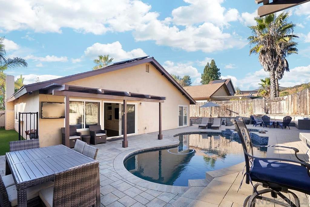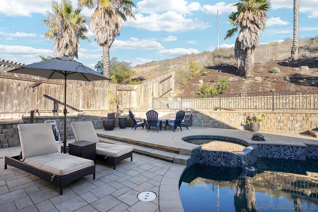 Discover a rare single-story home on a half-acre lot in the heart of Rancho Peñasquitos with gorgeous mountain views as a backdrop. This home welcomes you with updated curb presence. Inside, the flexible 4-bedroom layout offers wide appeal: perfect for working from home, multi-generational living, guests, or creating dedicated spaces for hobbies and fitness. Vaulted ceilings upon entry and open concept living room/dining room with fireplace. Updated kitchen overlooks family room with sleek custom built-in for additional storage or display. 4 bedrooms, one of which currently used as office/gym. The backyard is perfect for entertaining or escaping from it all: A sparkling pool with beautiful blue tile work & updated pebbletech and spa for warm San Diego days. Expansive patio areas for dining and lounging, including elegant firepit for great conversations and covered BBQ area with seating. Terraced area provides additional fun for corn hole or bocce ball. Maintained slope provides privacy and a serene natural backdrop. Other details include: Hardwood flooring, solar panels, shiplap wall in family room, chair rail in living room. Finished attic provides plenty of storage and easily accessed with pull down ladder. Convenient dog run with artificial turf installed. Poway Unified School District. No HOA and no Mello-Roos. Quick access to shopping, dining, grocery stores, Pitchers, the new Better Buzz Coffee, parks, and freeways 56 & 15. Opportunities like this: single story, half-acre, pool, privacy, location, rarely come available.