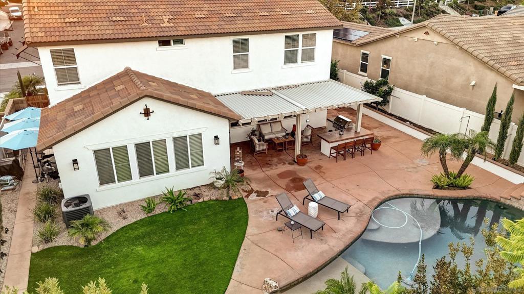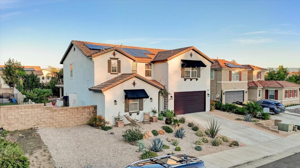Welcome to a beautifully cared-for family home that truly has it all. Perfectly situated near a charming neighborhood park, you’ll love having playgrounds, open green spaces, and everyday amenities just a short, easy walk away. Step inside and immediately feel the warmth of the home’s inviting interior, enhanced by tasteful finishing touches and freshly painted spaces that add a clean, modern feel throughout. The exterior has also been recently painted, giving the home a fresh, polished look and wonderful curb appeal. Complementing this is the newly renovated front yard, thoughtfully designed with Mediterranean-inspired, drought-tolerant landscaping that is both beautiful and low-maintenance. In the backyard, you’ll discover your own private retreat. Enjoy a spacious covered patio perfect for relaxing or entertaining, a built-in BBQ for weekend gatherings, and a sparkling pool and spa with a saltwater system that feels like your own personal escape. A cozy firepit completes the space, making it ideal for evening unwinding under the stars. Modern upgrades add comfort and convenience, including fully paid solar panels that help keep electric costs low, a tankless water heater, and an upstairs laundry room—no more carrying loads up and down the stairs. Warm, welcoming, and thoughtfully updated, this home is designed for easy living and memorable moments. It’s the kind of place you walk into and instantly feel at home. All of this with no HOA and Low Mello Roos/assessments! Hurry.