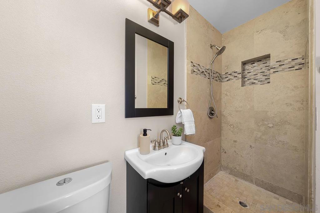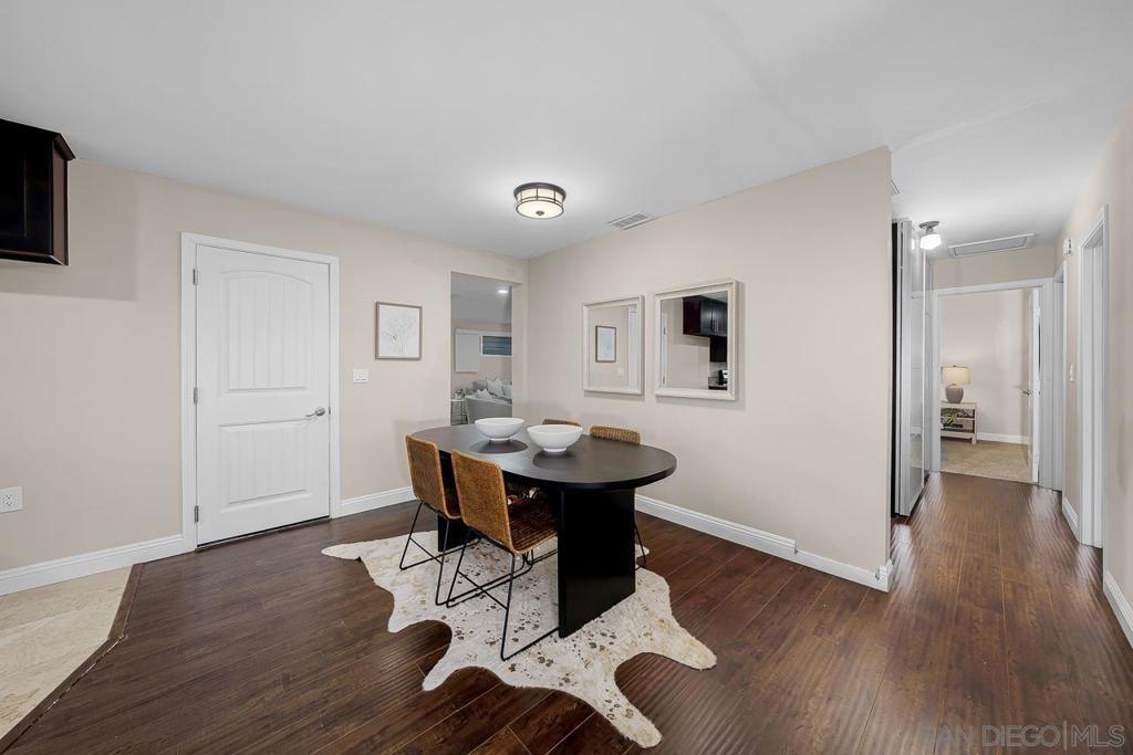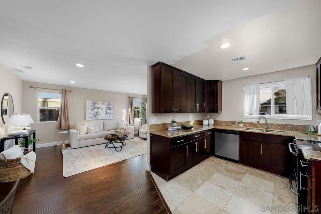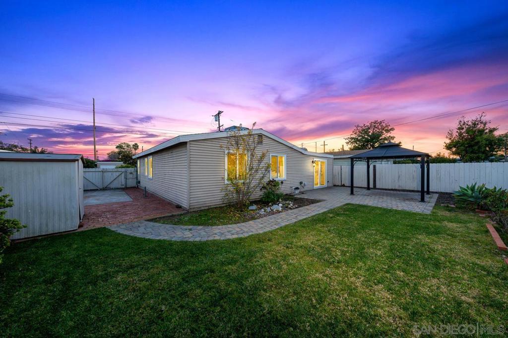 Nicely updated three-bedroom, two-bath single-story home in Clairemont awaits. Tasteful upgrades in the living area include dark wood-like, wide-plank laminate flooring, custom baseboards, and creamy hued walls and with plenty of ambient light. Kitchen has gleaming granite counter tops, plenty of cabinets, and adjacent dining area. Large family room has slider to the backyard, and has plenty of room for a pool table, Skee-ball, or you name it. Backyard has beautiful brick patio and walkway with space for a pool, hot tub, or home garden, and with an included shed. Front yard is drought friendly. Potential space for an RV included.