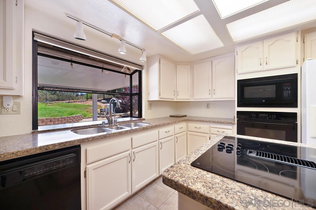 Tucked away on a peaceful 0.65-acre lot surrounded by mature trees and mountain views, this single-story retreat in Ramona’s sought after San Diego Country Estates offers the perfect blend of nature, space, and charm. A long private driveway winds through lush greenery, setting a tranquil tone as you arrive. Step inside to an open and versatile floor plan featuring elegant wood-look tile flooring and a spacious living room anchored by a timeless pass-through brick fireplace and custom wood built-in shelving—perfect for cozy evenings or effortless entertaining. The fireplace connects the living room to a dining and family room combination, creating a seamless flow through the heart of the home. The bright kitchen features crisp white cabinetry, granite countertops, a large center island, and a charming garden window that frames serene views of the backyard. A large sliding door opens to a deep covered patio strung with market lights, where you can dine al fresco or relax while taking in panoramic mountain views. The large primary suite is a peaceful haven, complete with a beautifully updated ensuite bath featuring quartz countertops, a walk-in shower adorned with ornate tilework, and a spacious walk-in closet. Two additional bedrooms offer comfort and flexibility for guests, family, or home office needs. Additional highlights include an owned solar system, convenient laundry closet with full-size washer & dryer, a private well that services the landscaping, and an attached 3-car tandem garage with ample extra parking. All just minutes from Ramona’s charming shops, restaurants, and country lifestyle—this is the peaceful escape you’ve been waiting for.