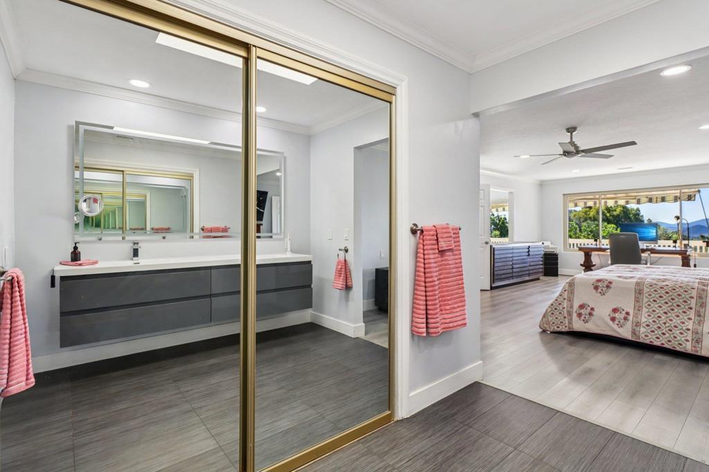 Would you love to have your own serene retreat with magnificent mountain views? This beautiful residence sits on a full acre in the highly sought-after South Escondido, known for its peaceful setting and unbeatable location near shops, restaurants, golf, Lake Hodges, and cultural venues—with quick freeway access and just 30 minutes to the coast or airport. This updated 4-bedroom home, plus a bright solar room facing the mountains, offers a wonderful blend of comfort and functionality. It features a remodeled, spacious kitchen equipped with a reverse osmosis water purification system, along with a separate formal dining room—perfect for family gatherings or entertaining guests. The home is fully operated by electricity and includes paid solar, ensuring energy efficiency and long-term savings. Additional thoughtful upgrades include a whole-house water softener system and two floor-vaulted safes, adding both convenience and peace of mind. The expansive backyard offers plenty of room for an RV, gardening, or future additions—and includes two full-size storage sheds, giving you even more space for tools, hobbies, or equipment. Relax and soak in breathtaking panoramic mountain views from the main floor deck or the upstairs balcony, each designed to embrace the surrounding natural beauty. A three-car garage plus additional parking for up to six cars makes this property as practical as it is impressive. Whether you’re seeking tranquility, space, or the perfect setting to entertain, this home has it all. Would you love to have your own serene retreat with magnificent mountain views? This beautiful residence sits on a full acre in the highly sought-after South Escondido area, known for its peaceful setting and unbeatable location near shops, restaurants, golf, Lake Hodges, and cultural venues—with quick freeway access and just 30 minutes to the coast or airport. This updated 4-bedroom home, plus a bright solar room facing the mountains, offers a wonderful blend of comfort and functionality. It features a remodeled, spacious kitchen equipped with a reverse osmosis water purification system, along with a separate formal dining room—perfect for family gatherings or entertaining guests. The home is fully operated by electricity and includes paid solar, ensuring energy efficiency and long-term savings. Additional thoughtful upgrades include a whole-house water softener system and two floor-vaulted safes, adding both convenience and peace of mind. The expansive backyard offers plenty of room for an RV, gardening, or future additions—and includes two full-size storage sheds, giving you even more space for tools, hobbies, or equipment. Relax and soak in breathtaking panoramic mountain views from the main floor deck or the upstairs balcony, each designed to embrace the surrounding natural beauty. A three-car garage plus additional parking for up to six cars makes this property as practical as it is impressive. Whether you’re seeking tranquility, space, or the perfect setting to entertain, this home has it all.
