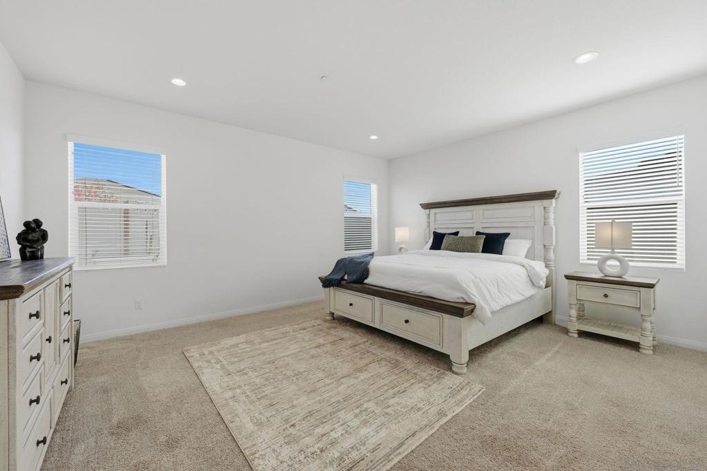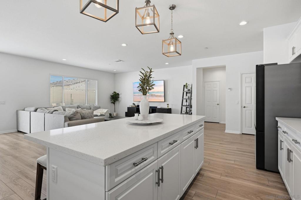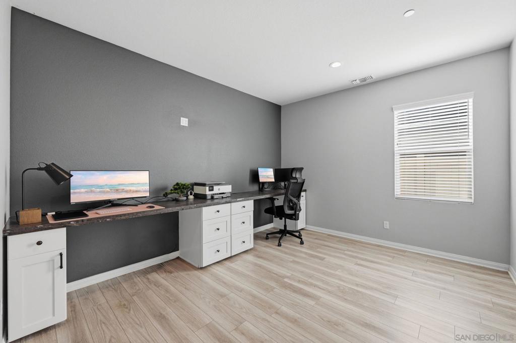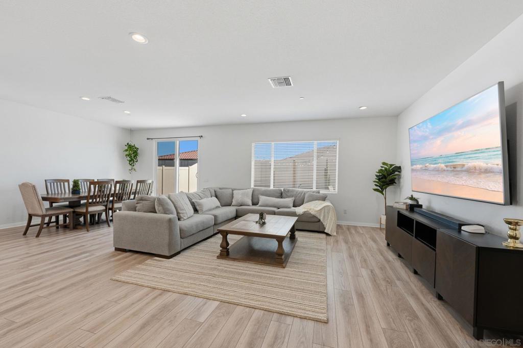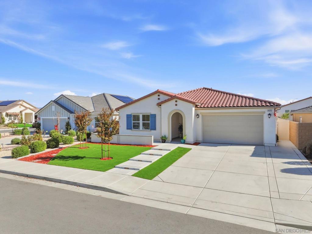 This immaculate single-story home blends comfort, style, and ease in a quiet, friendly community. Low-maintenance landscaping sets the tone, while owned solar panels and a whole-house fan keep energy costs down and everyday living effortless. No HOA! Inside, a bright and open living area welcomes you with tall ceilings and an inviting sense of space. The expansive kitchen is a true highlight, featuring a center island, modern cabinetry, sleek quartz counters, and a walk-in pantry, perfect for both everyday cooking and entertaining. A large dining area flows seamlessly to the private backyard, offering a blank canvas ready for your custom touches. A dedicated office provides the ideal spot for working from home, and the separate laundry room with built-in storage adds convenience. The generous secondary bedrooms offer comfort for family or guests, while the luxurious primary suite delivers your personal retreat with a spa-inspired bathroom complete with a deep soaking tub, separate shower, dual sinks, and a large walk-in closet. Additional perks include a two-car garage with pristine epoxy flooring. All of this sits just minutes from Diamond Valley Lake, Menifee Towne Center, and the 215 Freeway, bringing recreation, dining, and easy commuting right to your doorstep.