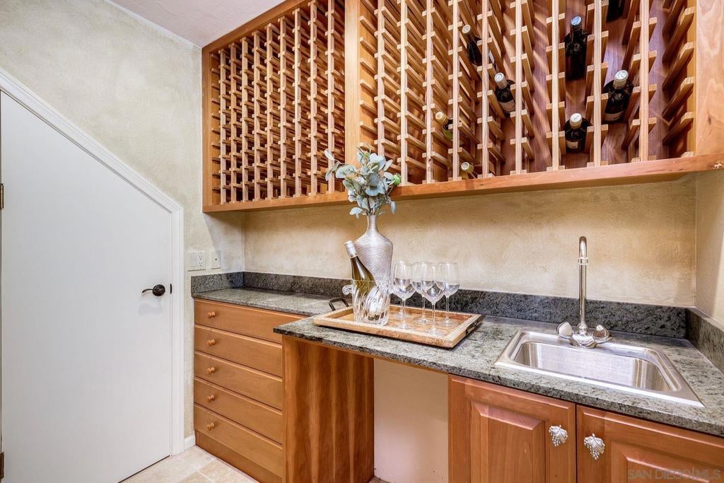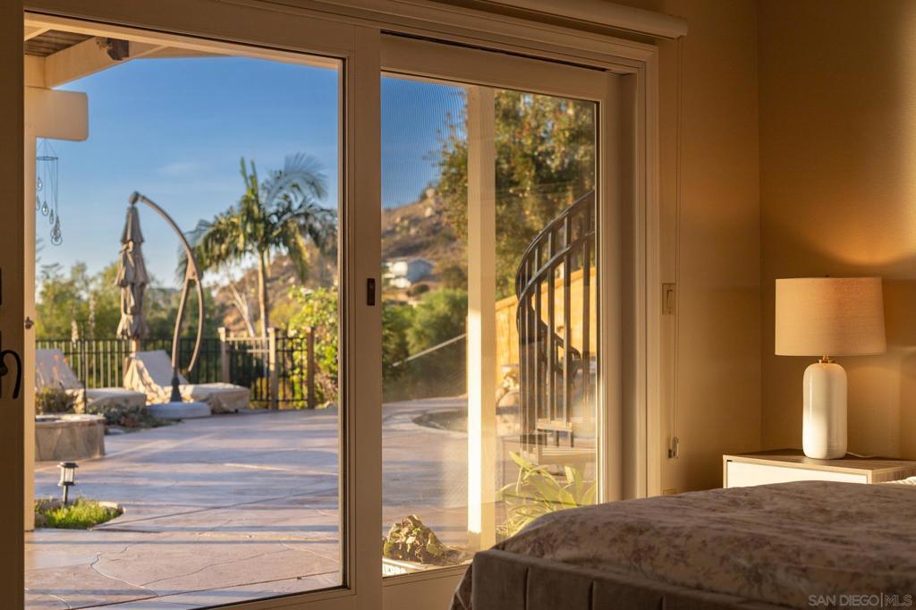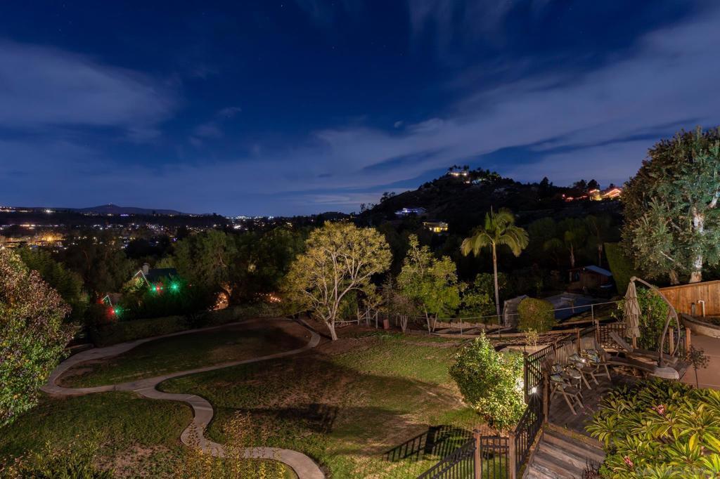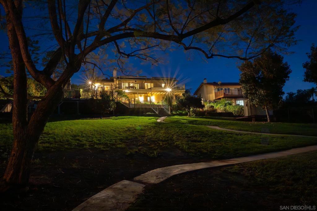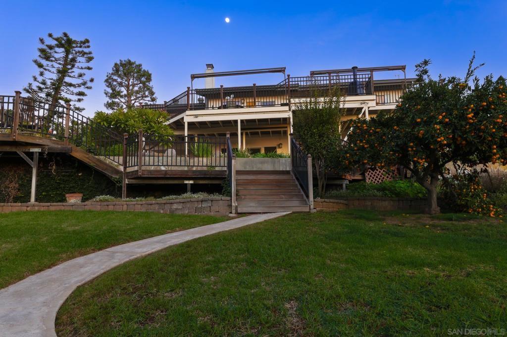 Quintessential Poway Living - the home in the City in the Country. Custom-built-home features everything Poway offers - updated, sizeable living spaces oriented to incredible expansive views plus a half acre of land, fruit trees, gardens, Horse trails are right in front of the home and the farmers market and Old Poway are walkable. Most rooms are oriented to the westerly views. The saltwater pool and spa were just resurfaced, and the rear patio was resurfaced as well. The massive wrap-around upper deck is if Ipe wood - incredibly hard, durable and fire resistant. Inside you'll enter to see dynamic views to the sunset, canyons, city lights and distant mountains. Find a custom designed gourmet kitchen with SubZero refrigerator, a 6-burner gas range, stainless steel sink and oven, granite countertops and custom cherry cabinetry. Breakfast bar, buffet and breakfast nook with a view. Upstairs features an office or bedroom with deck access and a full bath, living room and dining. The family room features a gas fireplace, built-ins and the primary suite is on the lower level with walk-out access to the pool and patio and a view of the cute pond. Don't miss the "speakeasy" wine room that includes vast storage, room for a wine fridge and a bar sink. Laundry room and other bedrooms are also on the walkout level. See supplement.... there's so much more! On a half-acre lot, there's room for kids to play, for gardens, for livestock for games. Lots of room to entertain and to soak in all of nature's gifts. Mature citrus trees are producing tangerines and oranges. A shed holds all the gardening tools you'll need. This home was lovingly updated and maintained and is ready for owners who will enjoy all of the land and home. High quality Milgard windows and sliders, custom Craftsman-style front door and exterior lighting. Custom cabinetry and builtins, mortared tile counters in bathrooms and in the massive primary shower. Lighted entry closet, extra pantry storage, cook's desk. So many thoughtful details and fine finishes throughout this unique and beautiful home! It's a must see! Welcome to Poway!