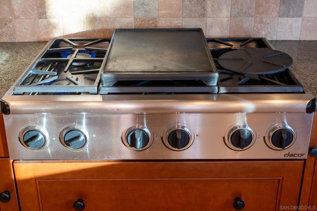- AppliancesSixBurnerStove, Dishwasher, Disposal, Gas Water Heater, Microwave, Refrigerator, Range Hood, Vented Exhaust Fan, Counter Top, Ice Maker, Trash Compactor