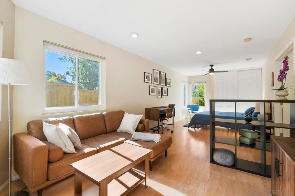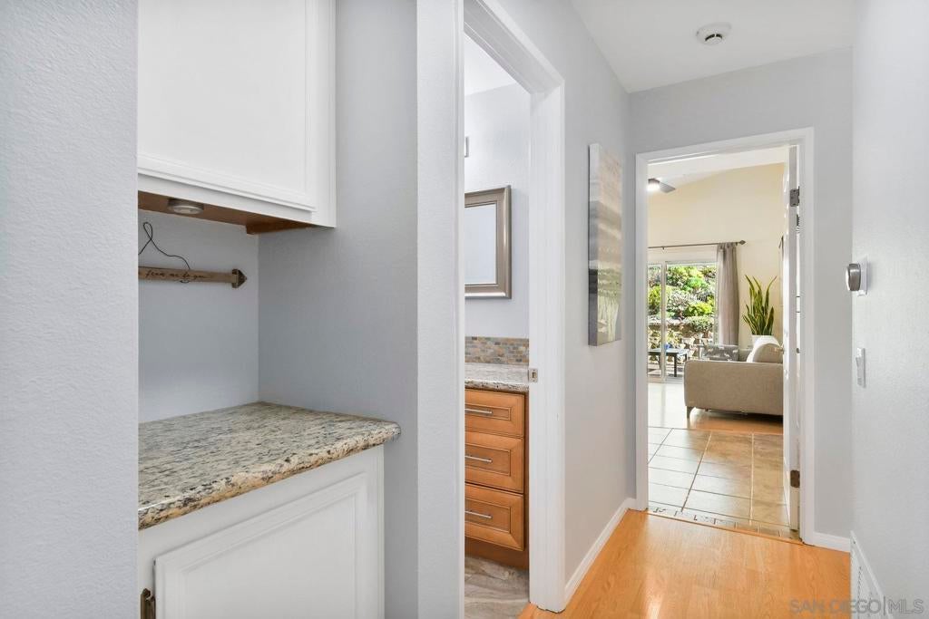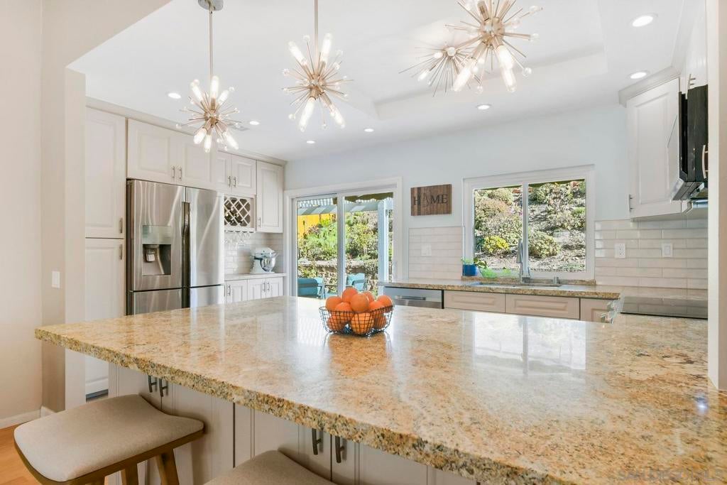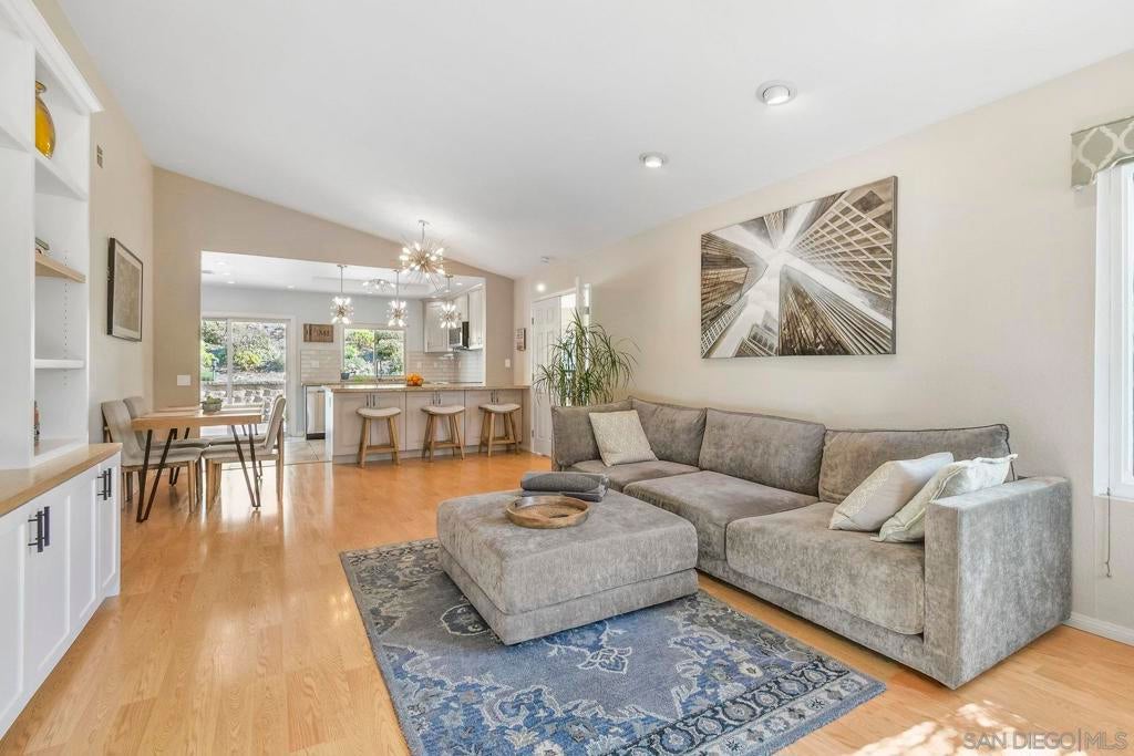 Discover this tastefully updated single-story home in Scripps Ranch on a spacious lot, offering a bright, open floor plan and modern upgrades throughout. The family room includes a built-in entertainment wall and opens to the remodeled kitchen with updated counters, cabinetry, and tons of storage. The third bedroom serves as a generous flex-space option suitable for an office, guest room, or combined use. Additional improvements include updated bathrooms, flooring, lighting, and ceiling fans. The exterior features professionally landscaped grounds with succulents, fruit trees, and artificial turf for low-maintenance living. The finished garage includes updated drywall and epoxy flooring. Located minutes from top-rated Jerabek Elementary, The French Oven bakery, neighborhood parks, and extensive trails. No HOA or Mello-Roos.