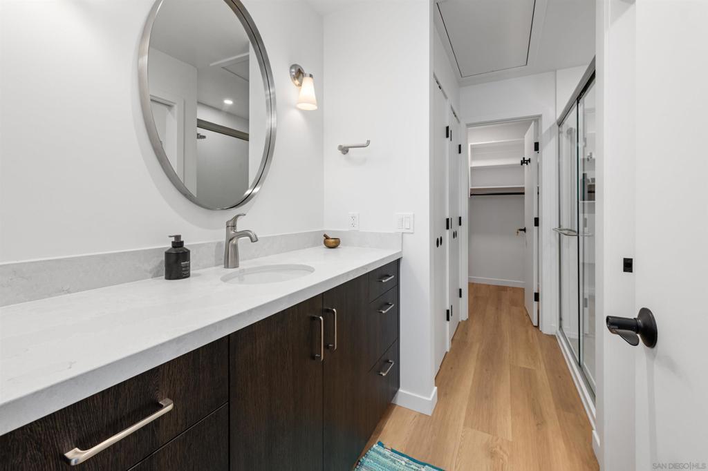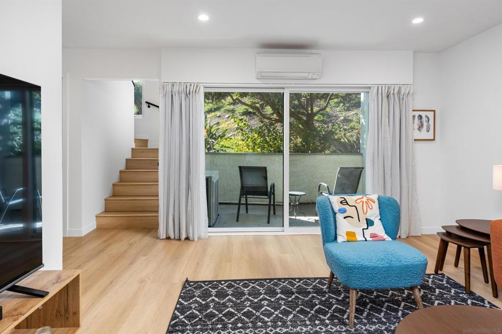 Seller financing available. Nestled in a serene canyon setting, this stunning townhome was meticulously remodeled over 12 months from top to bottom. The gorgeous kitchen has two-toned cabinetry, quartz counter-tops, induction range, reverse osmosis water filtration, and stainless steel appliances. Each bathroom is modern with thoughtful touches such as a heater built into the primary bathroom vanity. The home feels bright and open with tons of natural light from the new Milgard windows assisted by the new paint w/ smooth skim coat finish and light luxury vinyl plank flooring. The second bedroom has custom built in drawers for extra storage. The home also boasts a new a/c mini-split system throughout with recessed cassette style in the bedrooms and new lighting throughout, and a front patio and back deck. The two-car attached garage features EV charging, new water-heater with recirculating pump (for on demand hot water), stacked washer/dryer, stainless steel sink, and additional storage/coat closet right outside the garage. The home can be sold furnished. Within the complex there is a pool, tennis and pickleball courts, volleyball court, clubhouse, community garden, and guest parking all surrounded by Eucalyptus trees on 5 acres of land. This quiet, tucked away location is still close to freeways, shops, restaurants, and Mission Bay. The complex is also VA & FHA approved as well.
