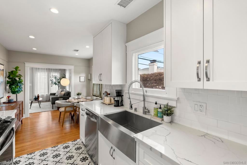 Do not miss this charming Craftsman home in the highly desired North Park neighborhood! This thoughtfully upgraded home has been remodeled throughout and needs nothing more than a new owner. As you step inside, you'll be greeted by an abundance of natural light illuminating the original hardwood floors, creating a warm and inviting atmosphere. The classic brick fireplace and custom built-ins add to the home's unique character, while modern upgrades seamlessly blend with the original 1930s charm. The floor plan includes a living room, a separate dining area, 3 bedrooms, 2 baths, and laundry within the home. The upgrades include a fully remodeled kitchen, remodeled baths, central A/C, 200 amp electrical panel, upgraded plumbing, and a pristine foundation. The large backyard is fully fenced and provides ample space for entertaining or parking. Nestled in the highly desirable North Park neighborhood, this property offers the perfect blend of community and convenience. Enjoy prime walkability and quick access to top-rated restaurants, Balboa Park, the Zoo, freeways, and beaches, making it easy to embrace the vibrant North Park lifestyle. Don't miss out on the opportunity to make this North Park gem your own.