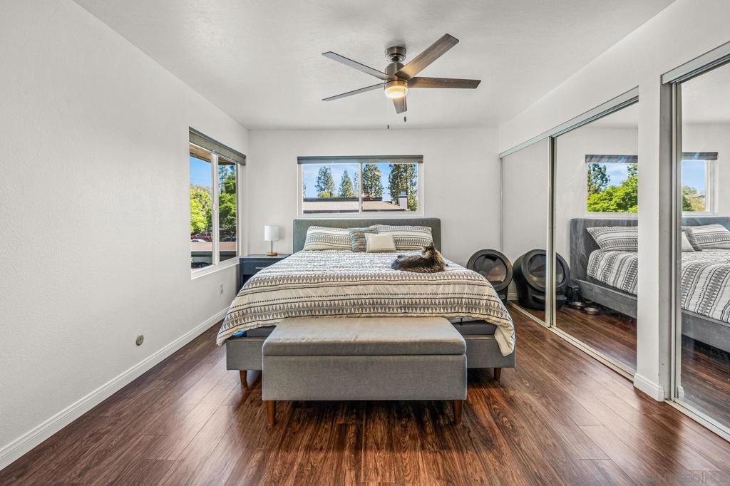 Beautifully updated end unit in a prime South Escondido location. This bright & spacious upstairs home shines with style and value, priced to sell offering the lowest price per square foot for a 2 bedroom 2 bath in the area. Enjoy the convenience of an HOA that covers water, gas for hot water, trash, and sewer, plus access to fantastic community amenities including a pool, spa, tennis and pickleball courts, basketball court, and gated entry. The HOA has also recently replaced the roof & skylights, providing added peace of mind. Inside, you’ll find a beautifully maintained home filled with natural light featuring dual pane windows with accordion blinds, updated hard surface flooring, fresh paint, & a wood burning fireplace with marble surround. Both bathrooms have been thoughtfully upgraded with marble vanities, a remodeled primary shower, and modern fixtures. The kitchen offers a clean, contemporary feel with marble countertops, subway tile backsplash, recessed lighting, built in microwave, and all appliances included. Smart home features such as a smart thermostat and video doorbell add comfort and convenience. Both bedrooms are generously sized, with the primary suite offering double closets. You’ll love the private patio which also includes a large storage closet with full sized washer & dryer. Parking is easy with two dedicated spaces right in front, one covered with a storage cabinet, plus plenty of guest parking. A pedestrian gate provides direct access to the nearby shopping center, and you’ll appreciate being close to Trader Joe’s, dining & convenient freeway access