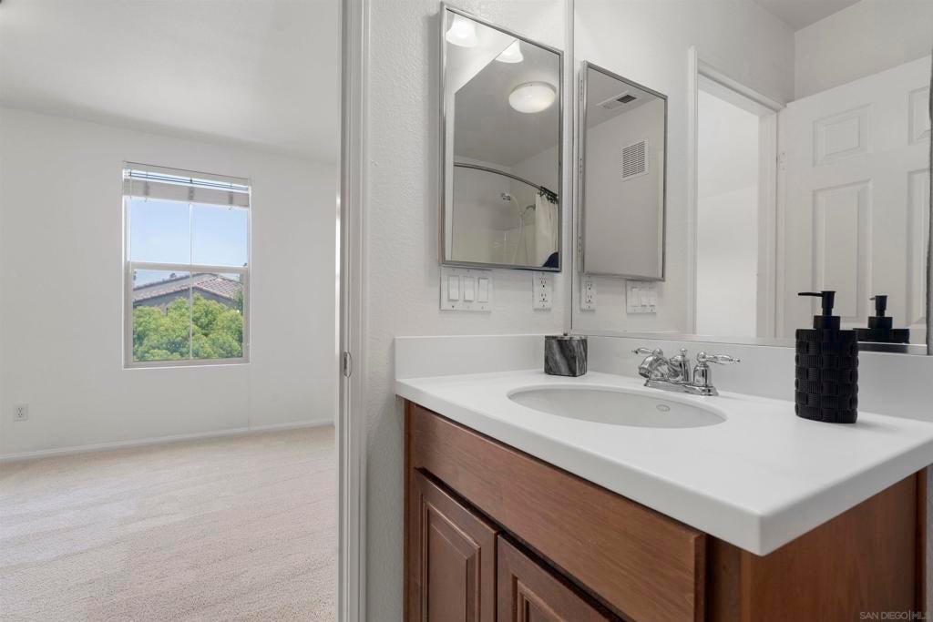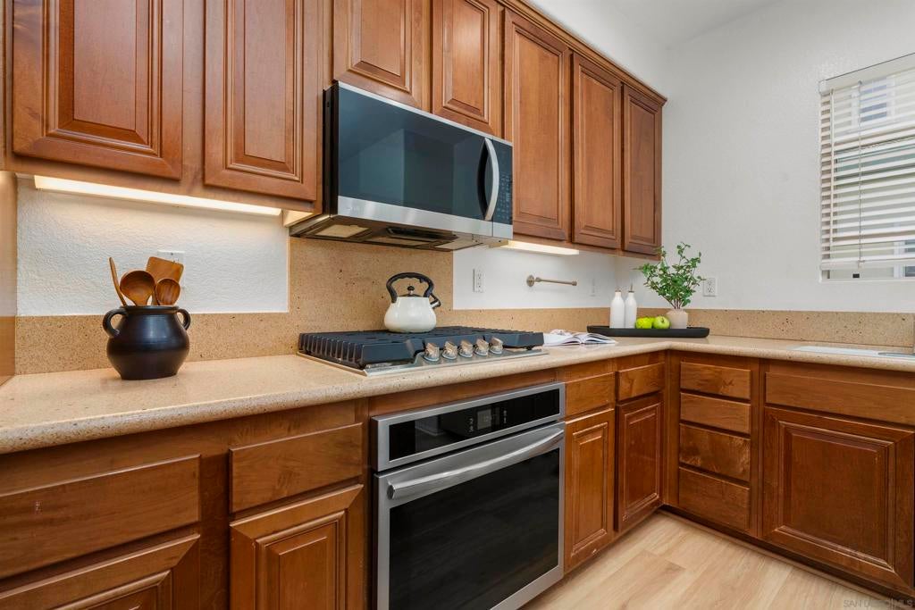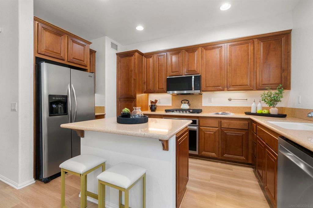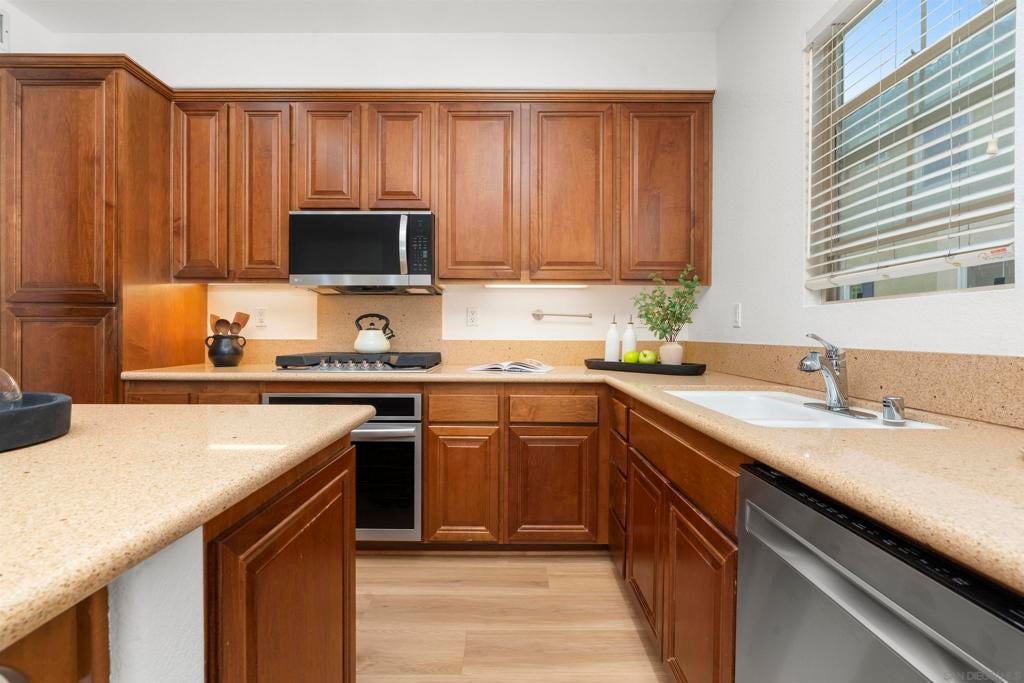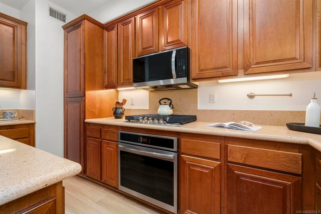 BEST PRICE IN ESCALA! Come experience the best of Mission Valley-living in this beautiful, rarely available Terraces townhome at Escala! Tucked in this amenity-rich community is our latest offering, a gorgeous tri-level townhome that is turn-key and waiting for its new owner. Upon entry, you'll immediately notice the handy flex-space room that could be an office, den, or bedroom. Fresh paint and carpet greet you throughout as you move upstairs to the main living area where you'll find your generously sized chef's kitchen with its island, updated appliances, and plentiful cabinet & counter space. Your adjacent dining room and living area feature lovely natural light and a cozy fireplace for memorable meals and fun movie nights. You'll appreciate the new LVP flooring throughout this area, and the convenient in-unit laundry and half bath. Move upstairs to two more bedrooms and baths in a user-friendly split floor plan, assuring privacy in each room. If you don't know Escala, you've been missing out! With its gorgeous pool area, walking trails, dog park, clubhouse and more, this community features some of the best amenities available, all in an uber-convenient location close to Fashion Valley mall, Hazard Center, USD, freeways, and more. Come see before it's gone!