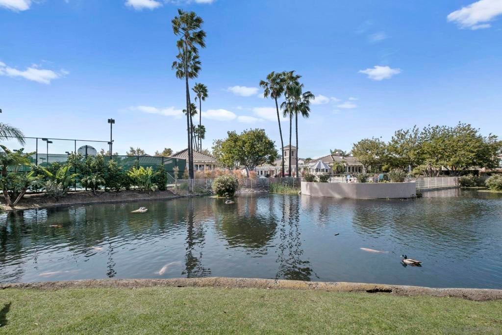 Stunning , sunny premier location, upper-level home welcomes you the moment you step through the door! Nestled in the highly sought-after gated community of Vista Del Lago, this beautifully/recently upgraded and meticulously maintained unit lives bigger than its size with the airy, vaulted ceilings and open space views! Dark Bamboo wood floors flow through the living room, dining area, hallway, & primary bedroom, complementing the custom-designed kitchen featuring new modern flooring and quartz counters, stainless steel sink and appliances. Unique to this unit is the large entry closet and additionally, a pull-down attic offers even more space for storing larger items. Primary walk-in closet has also been extended. Take in lush views from the private balcony. Assigned covered carport is directly in front. This home is a true gem! Schedule a tour today before someone else gets this beautiful move in ready home! Complex now approved for Fanny Mae and conventional lending. Come check out the Bernardo Vista Del Lago resort lifestyle complete with 2 community hot tubs, 3 pools (including 25-meter exercise lap pool), fully equipped exercise gym, pickleball, tennis, recreation room, duck pond and scenic hiking and biking trails. When you're done enjoying all of the community amenities, . Plenty of guest parking spots , as well as EV charging stations for convenience.