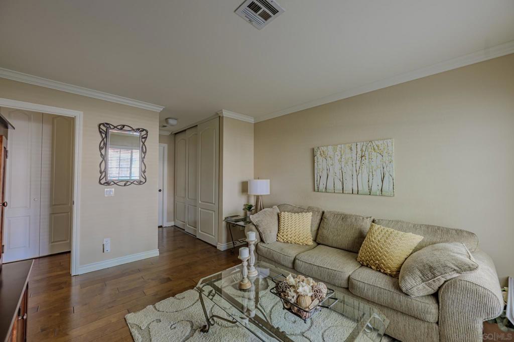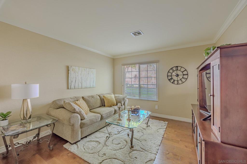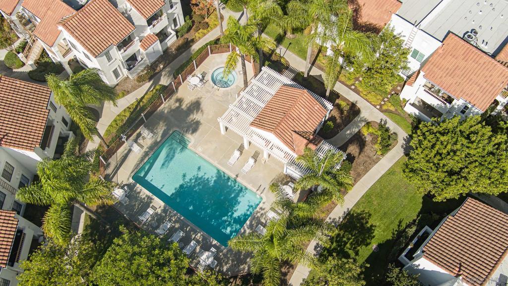 Welcome home to your private retreat! This meticulously maintained single-level, ground-floor condo offers 2 spacious bedrooms and 2 full bathrooms, each with generous closet space. The inviting layout flows seamlessly to a finished private patio — perfect for morning coffee or evening relaxation. Enjoy modern comforts including engineered wood floors, newer HVAC, a cozy gas fireplace, in-unit laundry, and a hot water heater with extended warranty. The community enhances your lifestyle with three sparkling pools, soothing spas, an exercise room with sauna, and lush landscaped walking paths. Located in the award-winning Poway School District, this VA and FHA approved complex provides covered parking plus ample guest spaces. With easy access to shopping, dining, parks, and major highways, this condo is move-in ready and waiting for you! This is the one! Single-level, ground-floor condo with 2 bedrooms, 2 baths, engineered wood floors, newer HVAC, cozy fireplace, and in-unit laundry. Enjoy a private patio plus resort-style amenities: 3 pools, spas, fitness center with sauna, and lush walking paths. Covered parking, VA/FHA approval, award-winning Poway School District, and adjacent to Sun Ridge Vista Park with playgrounds, courts, and trails. Comfort and convenience in Rancho Peñasquitos!