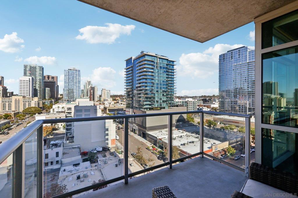 Experience elevated urban living in this beautifully updated residence at The Mark, one of East Village’s premier luxury towers. Ideally located just steps from Petco Park yet positioned away from noise and traffic, this home offers the perfect balance of excitement and comfort. The Gaslamp Quarter, Little Italy, and San Diego’s waterfront are all just moments away, placing the best of downtown at your doorstep. Inside, the open floor plan showcases sweeping city views. The spacious living area includes a built-in media console and a flexible dining space that can also serve as a workspace—perfect for taking in the skyline while you dine or work. A covered balcony extends the living area outdoors with expansive city and peek-a-boo bay views. The generous bedroom offers room for a desk and features a walk-in closet with a custom California Closet system. The oversized spa-like bathroom is accessible from both the bedroom and living area. The open kitchen is ideal for entertaining, complete with stone countertops, Studio Becker soft-close cabinetry, stainless steel appliances, breakfast seating, and abundant storage. Notable upgrades include an HVAC system with UV filtration, Ecobee thermostat, newer countertops, newer refrigerator, and full-size LG front-loading washer and dryer. The Mark offers exceptional amenities - concierge, newly updated saltwater pool/spa, upgraded courtyard with pizza oven, BBQs, lounge areas, state-of-the-art fitness center, and conference room. VA approved, this home offers resort-style living in the heart of Downtown San Diego.