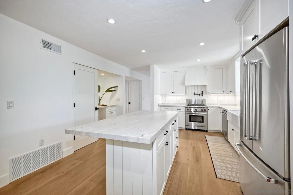 Welcome to your dream beach farmhouse in the sought-after Fire Mountain neighborhood of coastal Oceanside! This beautifully remodeled single-story home is a blend of classic charm and modern convenience, offering the perfect coastal retreat. As you step inside, you'll be greeted by fresh paint, hardware and gleaming hardwood floors that flow seamlessly throughout the home. The spacious living area is perfect for entertaining guests, while the additional family room provides a cozy space to unwind after a day at the beach. The heart of the home boasts a stunning kitchen featuring stainless steel appliances, Restoration Hardware fixtures, and elegant quartz counters, creating a stylish and functional space for culinary adventures. Whether you're preparing a gourmet meal or enjoying a casual breakfast, this kitchen is sure to inspire. Step outside on this 11,700 sq ft lot, to discover the expansive backyard oasis, complete with established trees providing shade and privacy. It's the ideal setting for outdoor gatherings, BBQs, or simply basking in the sunshine with a good book. But that's not all this home also offers a versatile flex room with a full bathroom and separate private yard space. Whether you need a home office, guest suite, or studio, the possibilities are endless. Conveniently located and available for immediate move-in, this beach farmhouse offers the ultimate coastal lifestyle. NO HOA. Pets allowed. Don't miss your chance to call this charming oasis home! Welcome to your dream beach farmhouse in the sought-after Fire Mountain neighborhood of coastal Oceanside! This beautifully remodeled single-story home is a blend of classic charm and modern convenience, offering the perfect coastal retreat. As you step inside, you'll be greeted by fresh paint, hardware and gleaming hardwood floors that flow seamlessly throughout the home. The spacious living area is perfect for entertaining guests, while the additional family room provides a cozy space to unwind after a day at the beach. The heart of the home boasts a stunning kitchen featuring stainless steel appliances, Restoration Hardware fixtures, and elegant quartz counters, creating a stylish and functional space for culinary adventures. Whether you're preparing a gourmet meal or enjoying a casual breakfast, this kitchen is sure to inspire. Step outside on this 11,700 sq ft lot, to discover the expansive backyard oasis, complete with established trees providing shade and privacy. It's the ideal setting for outdoor gatherings, BBQs, or simply basking in the sunshine with a good book. But that's not all this home also offers a versatile flex room with a full bathroom and separate private yard space. Whether you need a home office, guest suite, or studio, the possibilities are endless. Conveniently located and available for immediate move-in, this beach farmhouse offers the ultimate coastal lifestyle. NO HOA. Pets allowed. Don't miss your chance to call this charming oasis home!