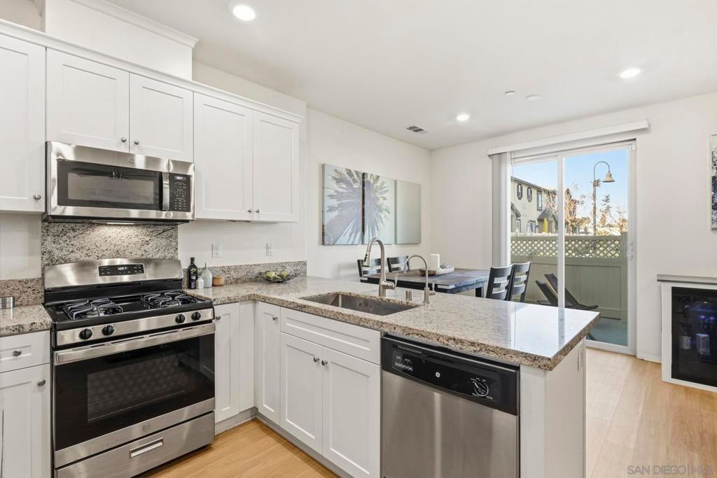 Welcome home to Solera by Lennar, a beautifully maintained community that lives comfortably with modern conveniences and intentional spaces. Built in 2020, this townhome’s inviting and open layout effortlessly connects the living, dining, and kitchen areas. The kitchen provides ample countertop space, and offering an extension of the downstairs living area, a slider opens up to the private, gated patio, perfect for indoor-outdoor entertaining. The home offers three bedrooms, two and a half bathrooms, 1,396 ESF, smart home technology, and storage throughout. An attached two-car garage adds thoughtful upgrades for daily life, including epoxy floors, a Tesla charger, and a water-softening system. Conveniently located by the bedrooms sits a large laundry room, and the spacious primary suite offers a walk-in closet and attached bathroom. Outside, the community enjoys views of the hills and features a pool, spa, clubhouse, BBQs, and park, with close proximity to stores, activities, and conveniences. Ready to welcome you home to inviting gathering spaces, low-maintenance living, and smart home amenities, Dolcetto Ave offers a refined blend of comfort and convenience!