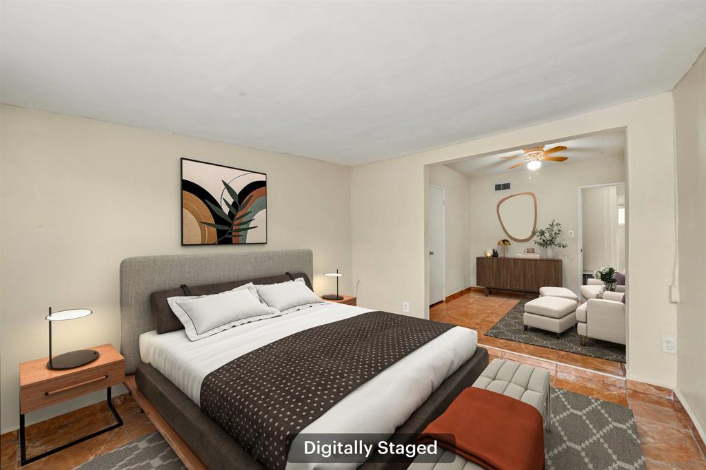 California Mediterranean style single-story home, thoughtfully improved and truly move-in ready. Recent upgrades include a remodeled bathroom, dual-pane windows, a new garage door, central forced air and heat, and a new roof. The home also features an expanded living room and an enlarged primary bedroom, creating a more open and comfortable living experience. Both the front and back yards have been fully refreshed. The front yard highlights attractive drought-tolerant landscaping, while the backyard offers Desert Gold DG, mature fruit trees including fig, lemon, and orange and ample space for outdoor relaxation and entertaining. A storage shed provides flexible use, and an attached utility closet may offer potential for adding an additional bathroom (buyer to verify). Ideally located near freeways, shopping, parks, and schools, this home combines thoughtful upgrades, functional living space, and a convenient location ready for you to call it home.