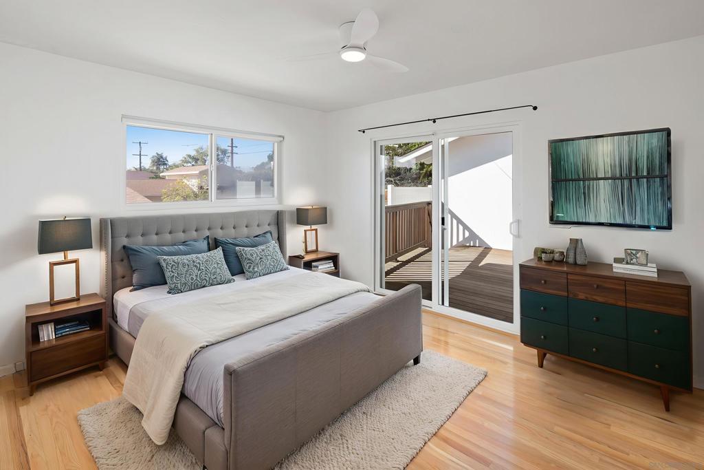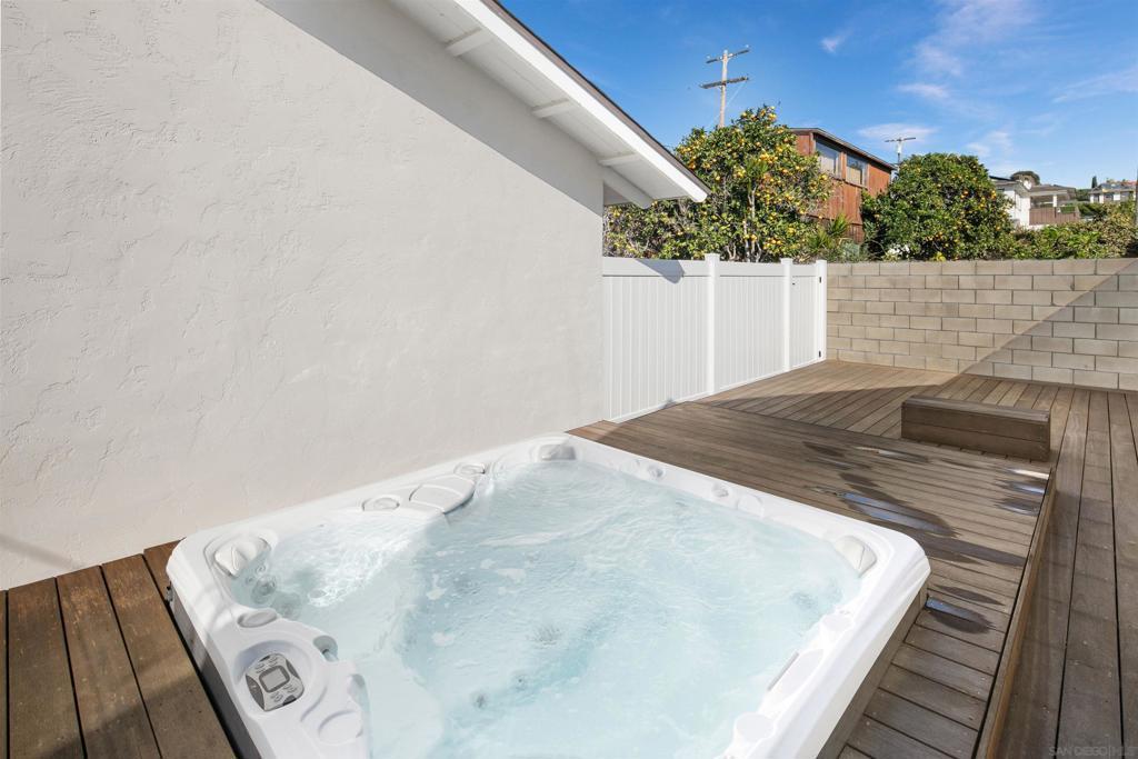 Discover this beautifully maintained, single-family home in the coveted North Pacific Beach neighborhood, mere blocks from the sand and the vibrant Bird Rock village. Nestled on a quiet, tree-lined street on the edge of La Jolla, this residence offers a perfect blend of classic charm and modern upgrades. The open and flowing floor plan features elegant hardwood floors throughout and includes a formal living room with a cozy fireplace, a separate dining room, and a huge family room for effortless entertaining. The beautiful, modern kitchen is equipped with newer stainless steel appliances and a convenient breakfast bar. Retreat to the private master suite, a true sanctuary complete with a spa-like en-suite bath featuring travertine tile and direct access to a private deck. Two additional spacious bedrooms provide ample flexibility. Step outside to your own private oasis: a expansive wood deck housing a relaxing hot tub, perfect for year-round enjoyment. Additional premium features include central air conditioning, an indoor laundry room, and a fully gated property with included landscape and hot tub maintenance. A detached one-car garage is accessed via the rear alley.