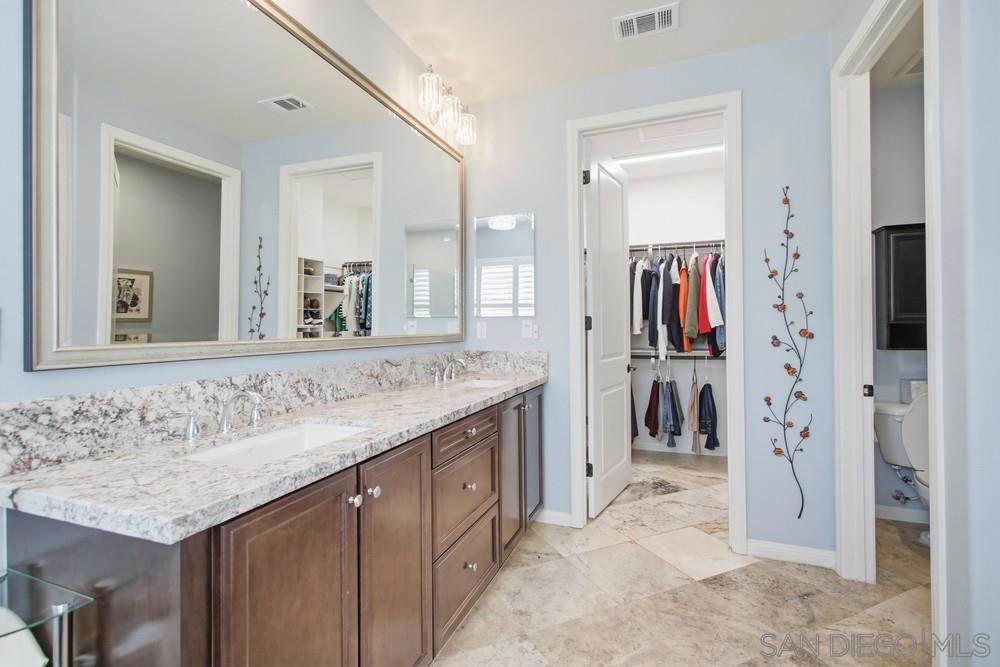 Start the new year in this exquisitely upgraded single-story home in the exclusive 55+ community of Auberge at Del Sur. This 3 bedroom, 2 bathroom home features elegant travertine flooring throughout, complemented by custom crown moldings, dual solar tubes, and bespoke built-ins in the living room, dining area, and primary suite. The chef’s kitchen is fully equipped with a walk-in pantry and wine fridge, while energy efficiency is maximized via fully owned solar system and a tankless water heater. This property includes all appliances and offers the unique potential to be purchased fully furnished for a truly seamless transition. The resort-style backyard featuring travertine pavers, an aluminum pergola, and a tranquil waterfall. The grounds are a gardener’s dream, boasting a functional vegetable garden and a prolific orchard with over ten varieties of fruit, including over-producing avocado, lime, and pomegranate. Enjoy pools, pickleball, a 5-star resort clubhouse, trails, events & more in Auberge Del Sur’s premier 55+ community offering a low-maintenance lifestyle.