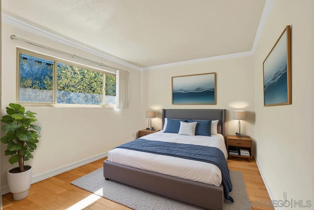 Welcome to this beautifully updated and highly sought-after upstairs unit in the ideally located Casa Dorada community. This home offers the perfect blend of privacy, convenience, and comfort. Featuring beautiful wood flooring and custom blinds, the interior feels modern, bright, and move-in ready. Home is freshly painted and updated with modern lighting and kitchen features. Enjoy peaceful living as the residence features a private balcony and backs up to a quiet, serene hillside. Community features laundry services, a gorgeous pool and spa, BBQ area, and more. Just minutes from major freeways, SDSU, Cowles Mountain, shopping, restaurants, and more, this home delivers exceptional access to everything San Diego has to offer. Don’t miss this opportunity to own a private retreat in a prime location. Home is virtually staged.