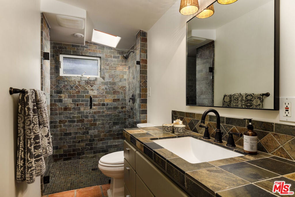 A remarkable fusion of classic elegance and modern luxury awaits where Mission Canyon's charm meets sophistication. This 1925 estate spans a beautifully landscaped acre, offering a harmonious balance of privacy, comfort, and architectural artistry. The expansive 3-bedroom, 3.5-bathroom main house exemplifies refined living. Step into the dramatic great room, complete with soaring vaulted ceilings and a cozy fireplace, a perfect blend of living and dining. Each bedroom is thoughtfully designed as an en-suite sanctuary, offering unparalleled comfort. The primary suite boasts a sizable walk-in closet, originally a fourth bedroom. Hardwood floors provide timeless character, while central air conditioning ensures year-round comfort.Lovingly updated, this home seamlessly integrates its historic charm with modern conveniences. Key features include a copper roof, tankless water heater, cathedral ceilings, remodeled baths, and a central heating and cooling system. The chef's kitchen is equipped with high-end appliances, including double ovens and a gas range, delivering everything needed for effortless entertaining. The property features a dreamy stone guest cottage and an inviting retreat for visitors, equipped with one bedroom, one bathroom, a kitchen, and a fireplace. The outdoor amenities complete this dream lifestyle, with a serene pool and spa, meandering stone pathways, lush oak and fruit trees, and charming fountains set amidst majestic boulders. The backyard's thoughtful landscaping blends beauty and function, while the expansive patio areas invite relaxation and alfresco entertaining. Whether you dream of a serene retreat, a place to host friends and family, or a distinguished home base in Santa Barbara, 700 Mission Canyon Road delivers on every front.
