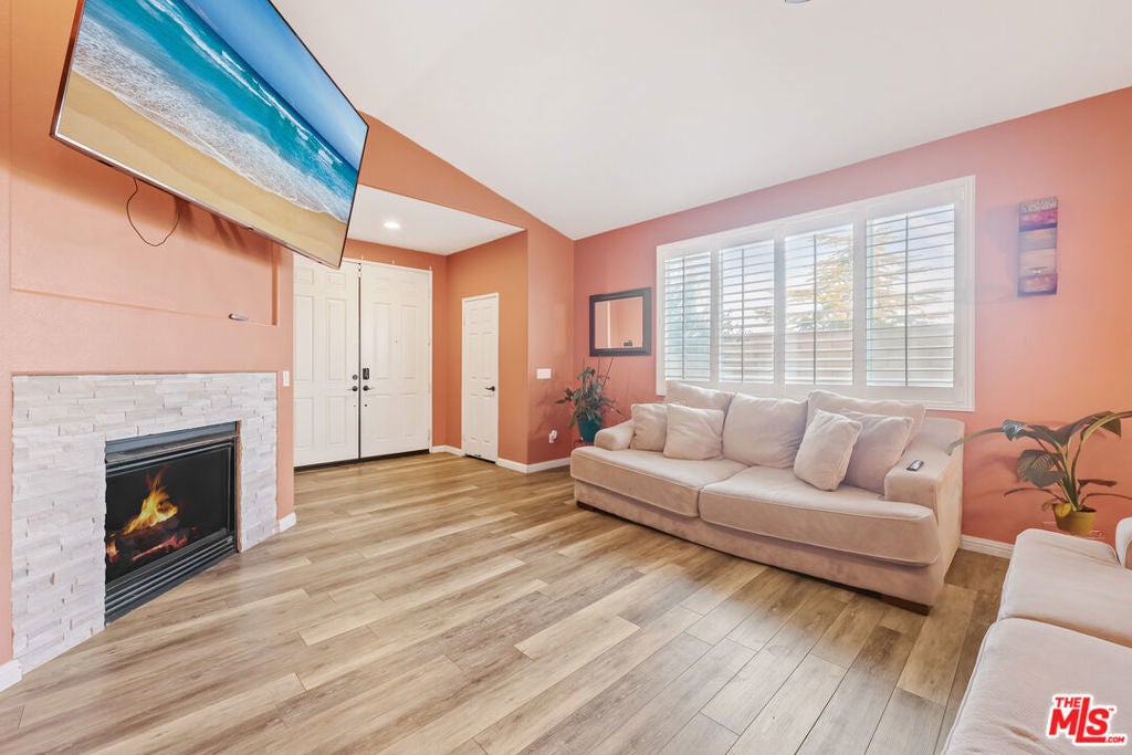 Welcome Home! A corner lot with an open concept and spacious rooms throughout. Take your pick of a master quarters upstairs or downstairs! Totaling 4 bedroom and 3 bathrooms (with his & her sinks in 2 of the 3), the whole family can have their own room! Hardwood Floors in most common spaces from the moment you hit the front door. The fireplace in the living room keeps the home cozy and just right for entertaining or family fun. Interior features include recessed lighting, stainless steel appliances, Smart thermostats (VIVANT) to control central HVAC from any mobile device, alarm system, laundry room, and an attached 2 car garage. Exterior enhancements included 20+ solar panels, drought resistant landscaped turf in the backyard, fenced in yard for added privacy, security system and more! Come tour this turnkey home today!