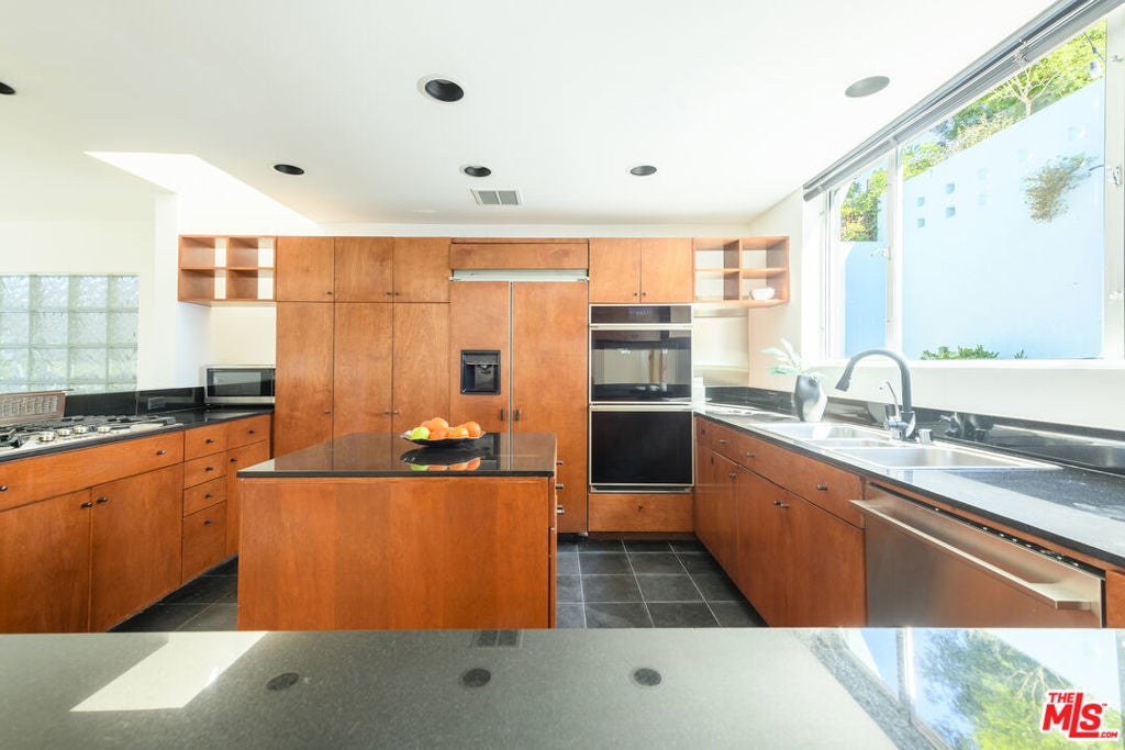 Contemporary Architecture in PRIME STUDIO CITY. South of the Blvd - Carpenter School District! Designed by the renowned architect Jeff Tohl, this 4 bed/3 bath, modern sky house is a true, recently-updated architectural gem. 25-foot ceilings and panoramic high-rise windows open to breathtaking mountain and skyline views. Over 100 windows and skylights allow natural light to pour throughout the house. Beautiful hardwood floors, multiple French Doors, and an ELEVATOR. The primary suite is jeweled with a fireplace, a private patio with an elevated creative space, and an updated marble bathroom with a huge soaking tub. The kitchen has brand new Monogram Appliances, a center island, and a separate wine bar. Other multiple bonus rooms can serve as a 5th/6th bedroom, gym, playroom, or office. Exterior spaces include three (3) balconies, two lush backyard gardens, and an outdoor patio yard. Hillside garden with Corten-steel and redwood terracing, fruit trees (lemon, peach, fig, pomegranate), many other fragrant landscaping & an outdoor dining and grassy area with panoramic views. This is an entertainer's showplace & delight! Additional features include a multi-zone HVAC system, a 2-car garage with an EV outlet, and 400 amp surge protection. Steps from Ventura Blvd, shopping, cafes, and the highly-sought Carpenter School. Don't miss the opportunity to own this exquisite architectural masterpiece South of Ventura Blvd!