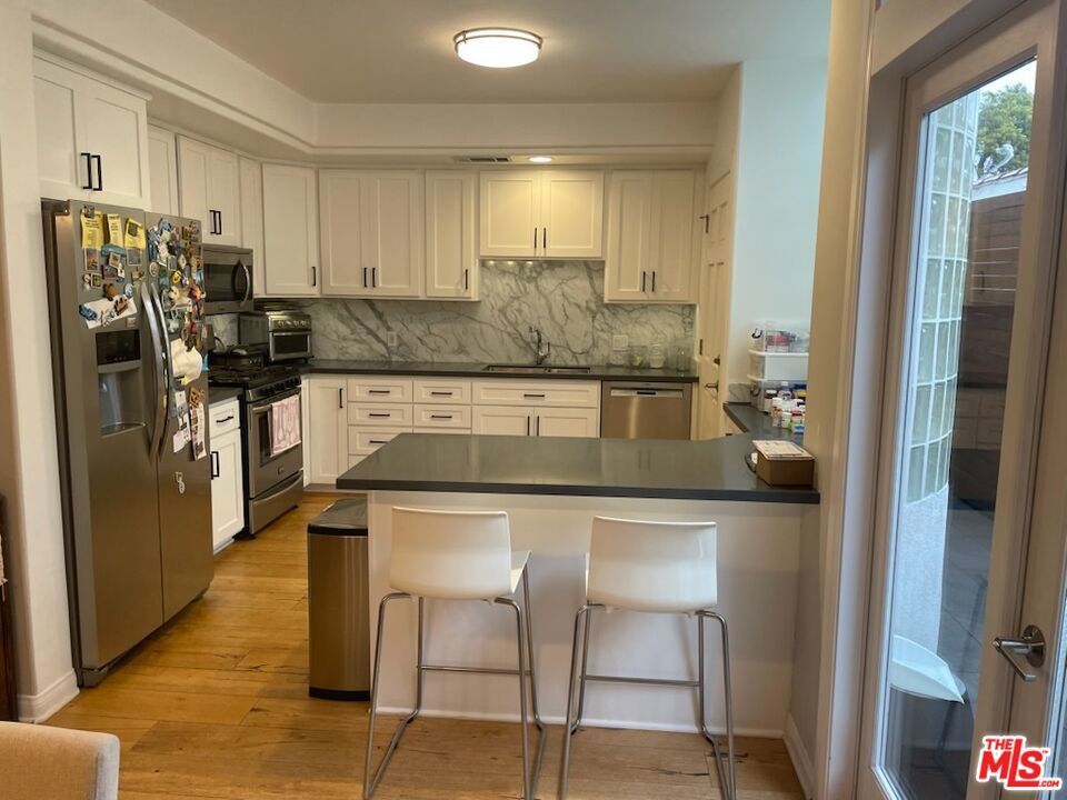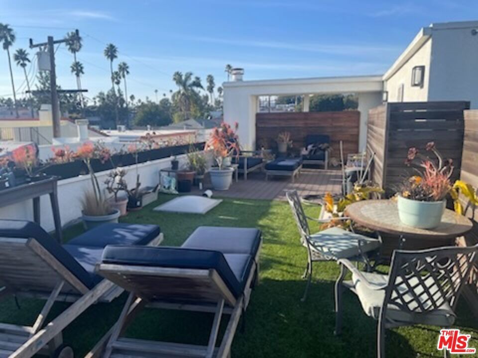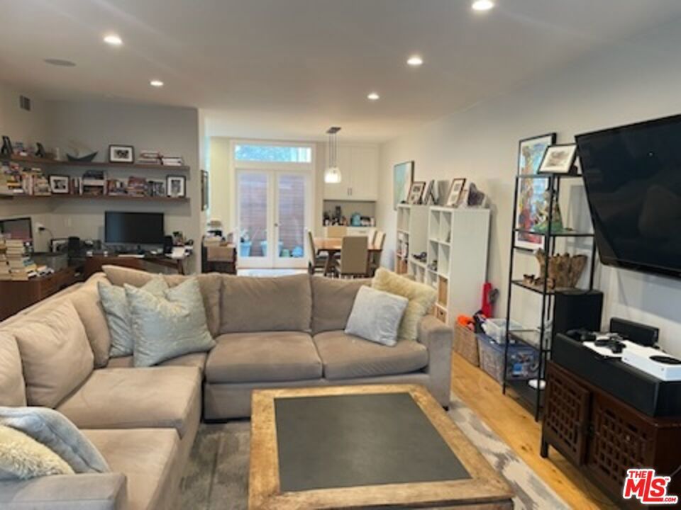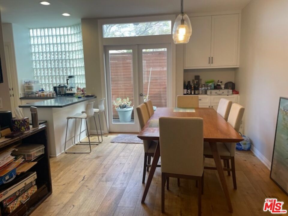 Furnished 3+2.5 townhome in ideal Santa Monica location. Spacious light & bright unit in a 4 unit complex with hardwood throughout, remodeled kitchen (with dishes and silverware) & dining (with table & chairs) that both have access to large balcony (with Grill). Powder room off large living room that is equipped with couch, TV, shelving and office area with desk. A private 2 car garage w/ direct access. 3 Bedrooms up with large primary (furnished with Bed, end tables and mounted TV). It features a lovely remodeled & bright primary bath. 2 Guest bedrooms, each have beds, end table and dresser and desk if needed. Beautiful rooftop deck (the length of the unit) with patio furniture and panoramic city views. Laundry room upstairs with sink. 1/2 block to Whole Foods, Trader Joes and great restaurants. Looking for 1 year lease and can extend if needed.