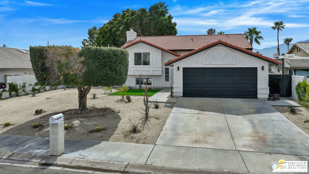 Beautiful split level home in very desirable area of Cathedral City with 4 bedrooms and 2 1/2 baths. Big living room and family room. Master bedroom has walk in closet with a master bathroom to die for Shower has two heads and is huge and is beautiful. Huge back yard with nice fruit trees. It also having RV parking Nice Beutiful Gate. walking Distance to Beautiful Park with tennis courts and baseball field. This Home Shines with Beauty.