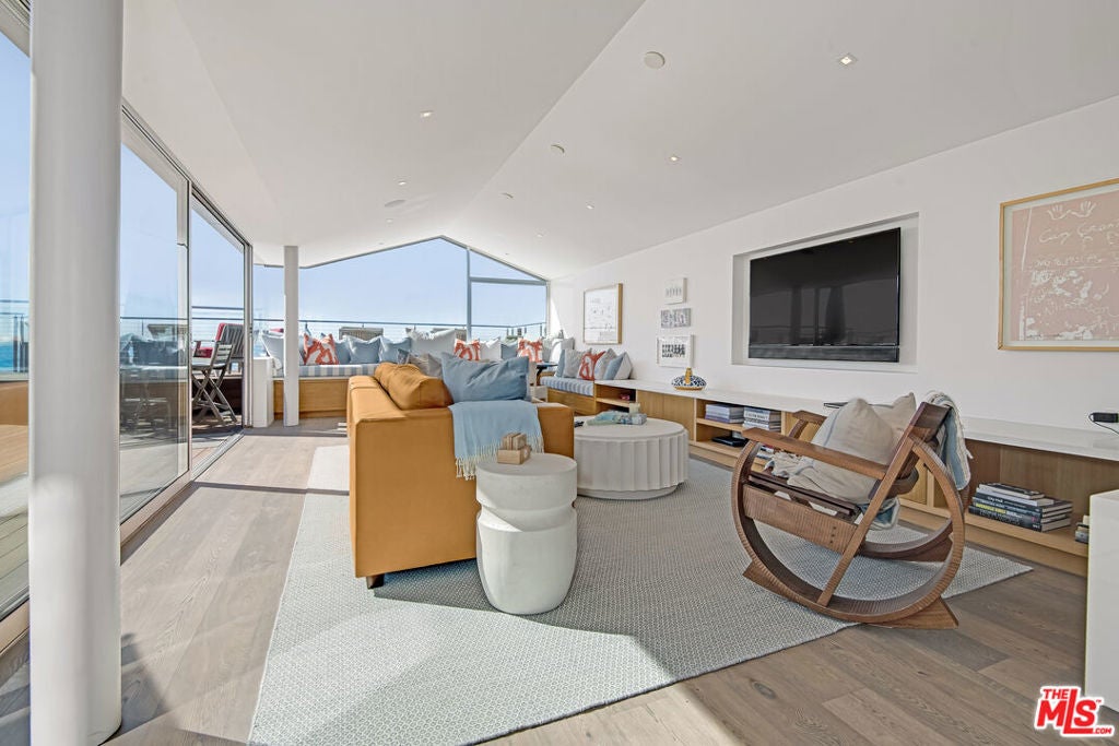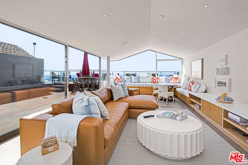 Extraordinary ocean front 5 bedroom estate, situated in the prestigious enclave of the guard-gated Malibu Colony. Walls of glass enhance magical sweeping views of the Santa Monica Bay coast to serene sunsets. Enjoyment can be found in the expansive front entertainment room with charming window seating, a flat screen tv and built-ins. The grand chef-style kitchen offers high-end appliances and double islands in Caesar stone, joining the dramatic living area with soaring ceiling and opens to the seaside patio, lounging deck & stairs to the beach. Ocean front primary suite, with lounging balcony, encompasses the upper level with sumptuous bath & outdoor hot tub on a private rear deck offering mountain views. There are 2 additional bedrooms in the main house. A separate guest unit includes an upper level entertainment room, large bedroom with mountain views & bathroom. Main floor bedroom with bath opens to the private central patio area with a BBQ. Beautiful recent interior designer enhancements make for ultimate comfort while living by the ocean. Smart home integration system throughout the main home. Call listing agent regarding Summer rental months. Nearby to great restaurants, well-known shops, Whole Foods, Malibu Pier & more!