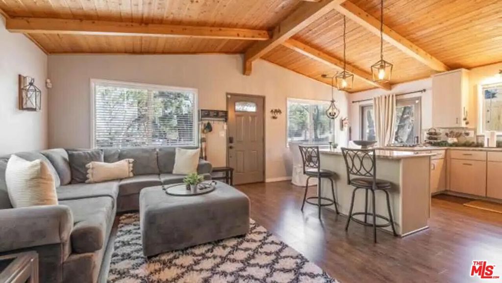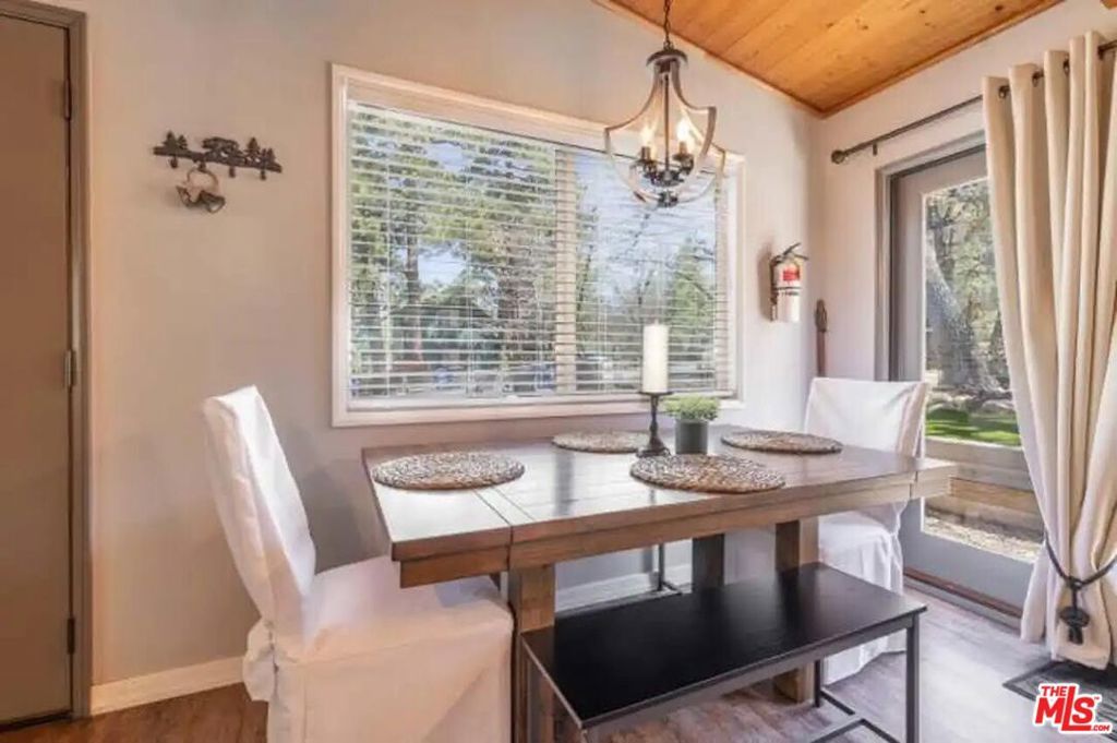 Unlike most of the houses in this area, this one has been completely reimagined and updated with dreamy finishes throughout. All of the beautiful furniture including the beds, dishes, refrigerator, snowblower, fire-pit, sofa bed recliner and tools with the exception of the 70 inch TV are included in the sale. The chef's kitchen features granite counter tops and designer hanging lights. An en suite bath has been added by the owners as well as new flooring throughout the cabin. The guest bath features a jacuzzi tub, there is a security system installed and French doors open to the back yard area. The property is in turn key condition with added perks like stylish decor and modern features throughout. This is a short sale and the final price is contingent on lender's approval.