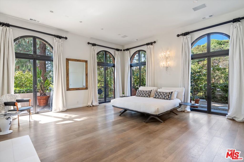 Experience the indulgence of residing in this opulent abode, available for both short-term and long-term stays, complete with professional housekeeping services! This exquisitely appointed home, replete with European influences, exudes impeccable style and sophistication. Nestled just steps away from the prestigious Beverly Park Estates and within easy reach of celebrity mansions, this single-story villa offers a tranquil retreat accessed through a meticulously landscaped courtyard. Inside, an open-concept layout seamlessly integrates the living room, dining area, library, and executive office, all connected to the expansive outdoor area featuring a heated saltwater pool, BBQ zone, and lounging area adorned with chaises perfect for unwinding. The luminous and sumptuous primary bedroom suite, adorned with high ceilings, French doors, a dual fireplace aside the hot tub, a separate luxurious steam shower, and an expansive walk-in closet, promises unparalleled comfort. Each of the three ensuite bedrooms enjoys direct access to a garden patio and the backyard pool, while a generously sized reading area and office overlook the front courtyard, embellished with vibrant bougainvilleas and a serene fountain. For added luxury and versatility, a separate detached guesthouse complete with a full bathroom, living area, and kitchenette may be included separately. This private retreat is ideal for guests, in-laws, or as a peaceful work-from-home space. The covered, gated 2-car garage offers convenient access, supplemented by additional parking in the driveway. Discover the epitome of luxury living in this remarkable home!