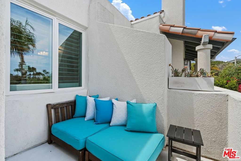 Portico At Malibu designer townhome with Viking appliances, Carrarra marble counters, custom cabinets, hardwood floors. Living area is spacious and open style with fireplace, and doors opening to private patio with gardens and fountain. Primary bedroom has high ceilings, spacious bedroom & bath with custom tub, separate shower and walk-in closet. Second ensuite bedroom doubles as a yoga studio with built in custom cabinets, murphy bed, high ceilings and loads of natural light. 3rd bedroom has high ceilings with remote control skylights and moisture sensors. Many skylights throughout allow for natural light all day. Spacious 2 car garage with cabinets and additional refrigerators. Beautiful community salt water pool and barbeque lounge area. Gated complex of only 21 townhomes.