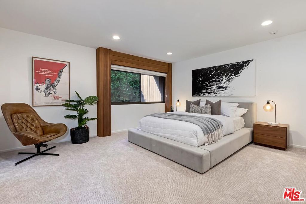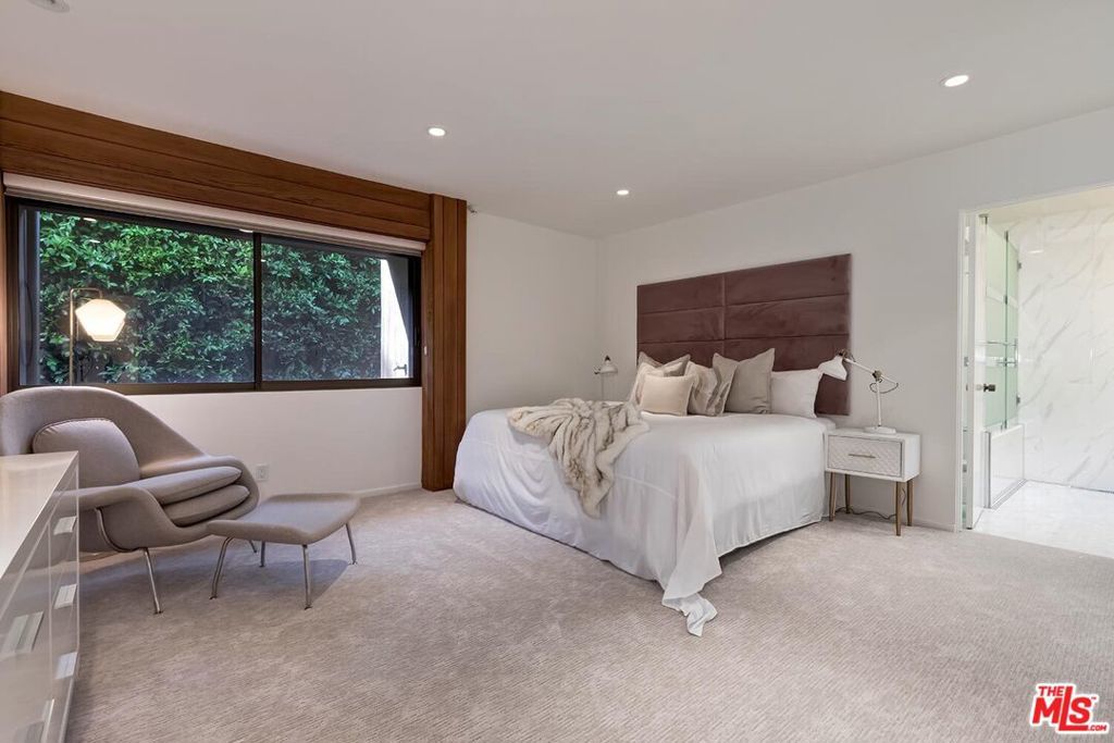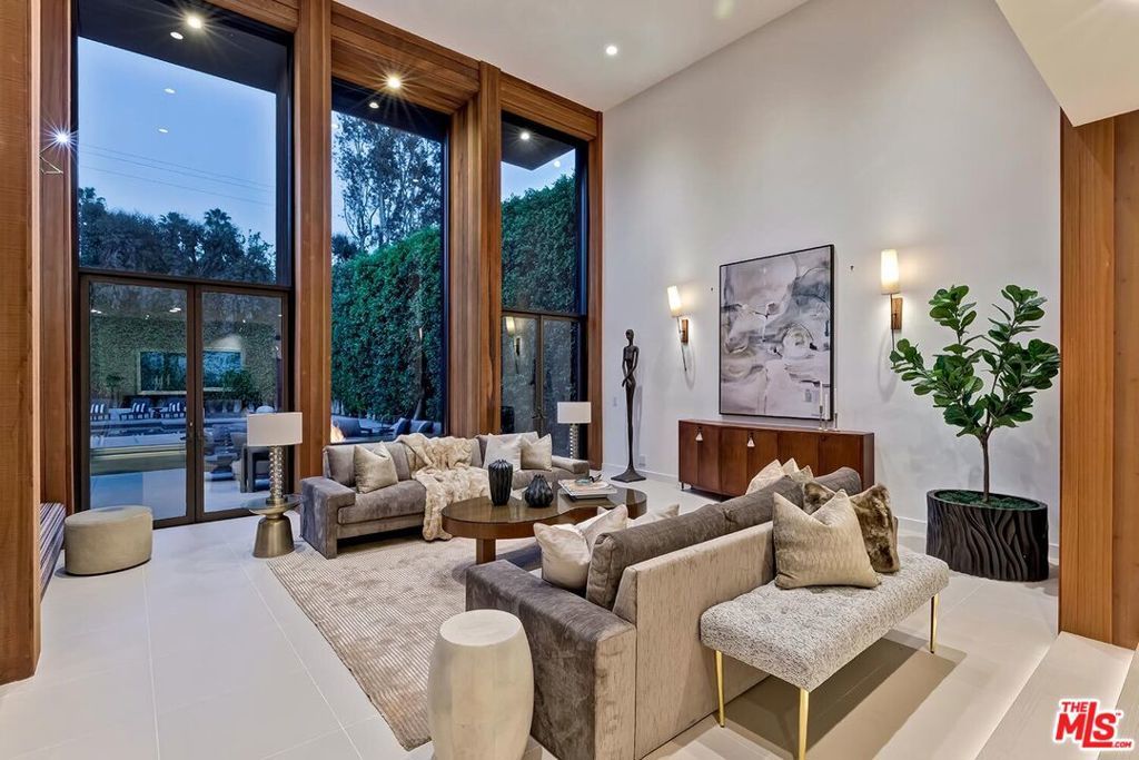 Masterful renovation/restoration completed in 2020 of this classic registered Beverly Hills' landmark 2sty Buff and Hensman Architectural Modern estate maintaining the original bold vertically geometric aesthetic of the home. Featuring storefront-type aluminum framed glass doors, redwood clad exteriors, and artistic stained glass, this pristine home is on a wonderfully large 85ft wide lot with a substantive backyard highlighted by lawns, patios, pool/spa, and inviting cabana all complemented by unusual privacy due to mature hedging. From the double-door entry, the open entertainment flow of the home is illustrated by the enormous dining room and dramatic 2sty living room each leading to the spectacular grounds. A fabulous private den/office and loft study area are off of a gallery and bar near the front of the home. Newer and massive dual-island top-quality kitchen and family room combination along with a walk-in pantry are located in the northern wing of the home and open to the grounds as well. There are 4 tremendous bedroom suites upstairs (each with a stunning newer bath) and one guest suite downstairs. Huge primary suite with fireplace, large balcony, and a newer dual-sided bath. Outdoor storage room and a gated 2 car garage. Fabulous and impressive asymmetrical architectural curb appeal on a coveted quiet 600 block moments from the heart of the city. 1st time available for sale in 29 years, this is a rare opportunity to acquire a truly generational landmark property just as one would a collectible art piece. Shown only to highly pre-qualified clients.